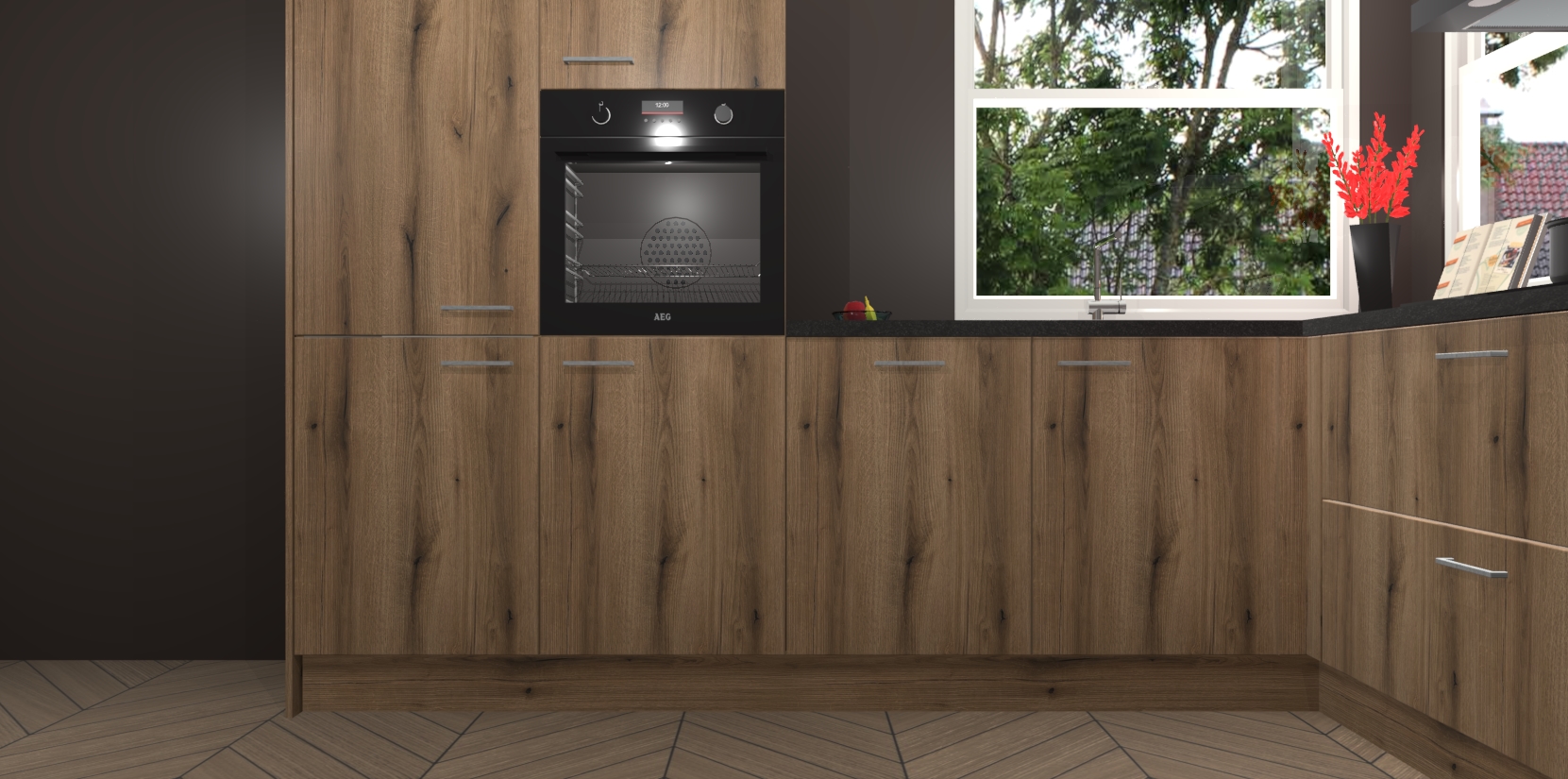 Elke Goud Eiken keuken Kotor wordt compleet geleverd met vijf inbouwapparaten, waaronder een oven, inductiekookplaat, afzuigkap, vaatwasser en koelkast. Sterker nog - indien gewenst kunt u deze apparaten na bestelling eenvoudig upgraden naar AEG! Extra functies zijn onder andere soft close deuren voor extra gemak, en elke kast wordt voor gemonteerd geleverd zodat u sneller van uw nieuwe keuken kunt genieten.