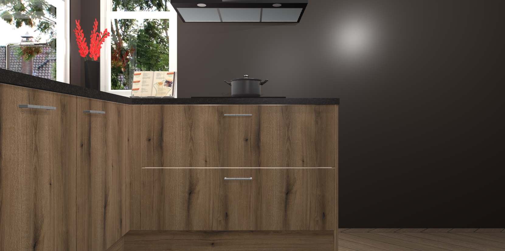 In deze box zijn alle kleuren verzameld van de deuren en werkbladen. Vraag de gratis kleurenbox aan en kijk thuis rustig verder!
