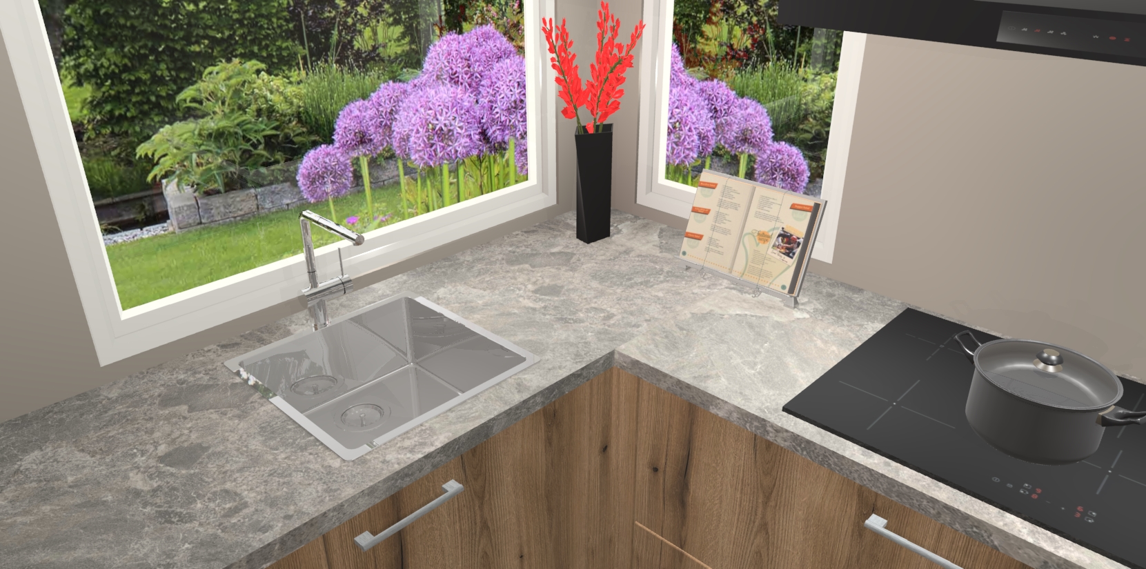 - Bij een hoekwerkblad zijn de hoeken in gevreesd en op maat gemaakt
