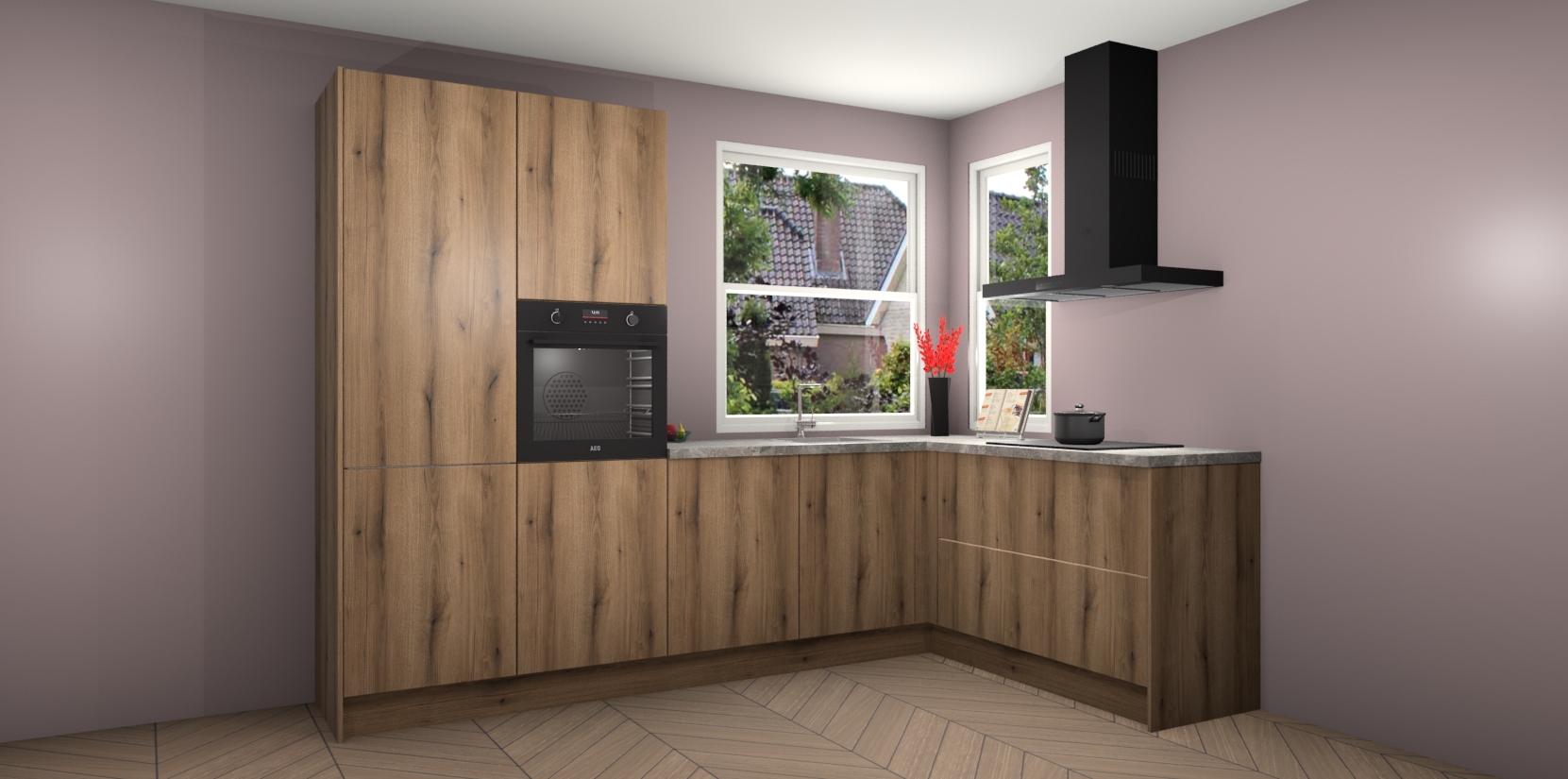 Elke Goud Eiken keuken Kotor wordt compleet geleverd met vijf inbouwapparaten, waaronder een oven, inductiekookplaat, afzuigkap, vaatwasser en koelkast. Sterker nog - indien gewenst kunt u deze apparaten na bestelling eenvoudig upgraden naar AEG! Extra functies zijn onder andere soft close deuren voor extra gemak, en elke kast wordt voor gemonteerd geleverd zodat u sneller van uw nieuwe keuken kunt genieten.