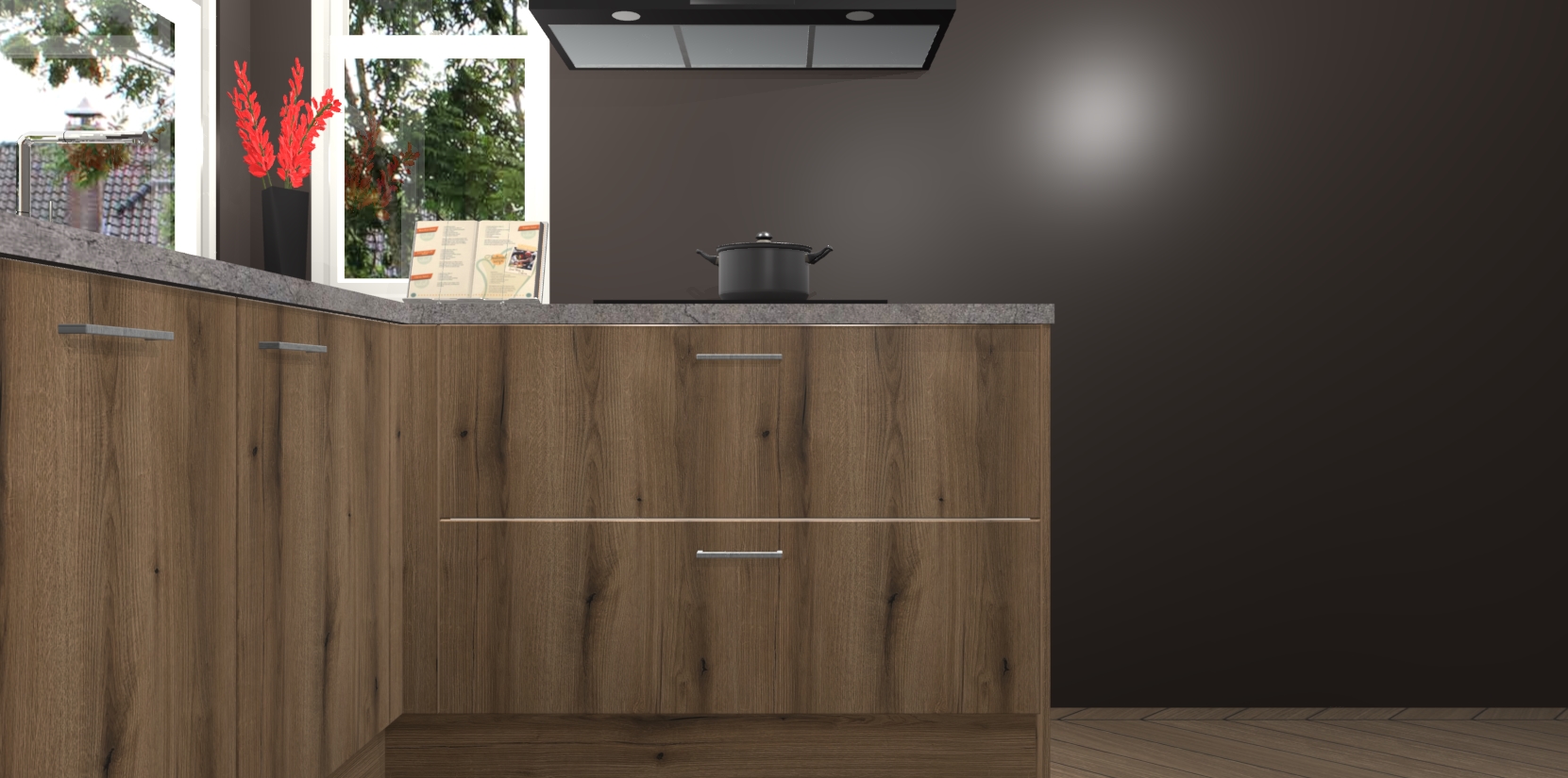 In deze box zijn alle kleuren verzameld van de deuren en werkbladen. Vraag de gratis kleurenbox aan en kijk thuis rustig verder!