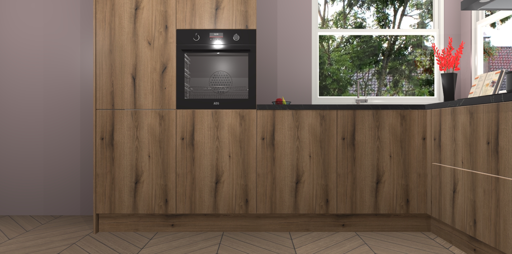 Elke Goud Eiken keuken Kotor wordt compleet geleverd met vijf inbouwapparaten, waaronder een oven, inductiekookplaat, afzuigkap, vaatwasser en koelkast. Sterker nog - indien gewenst kunt u deze apparaten na bestelling eenvoudig upgraden naar AEG! Extra functies zijn onder andere soft close deuren voor extra gemak, en elke kast wordt voor gemonteerd geleverd zodat u sneller van uw nieuwe keuken kunt genieten.