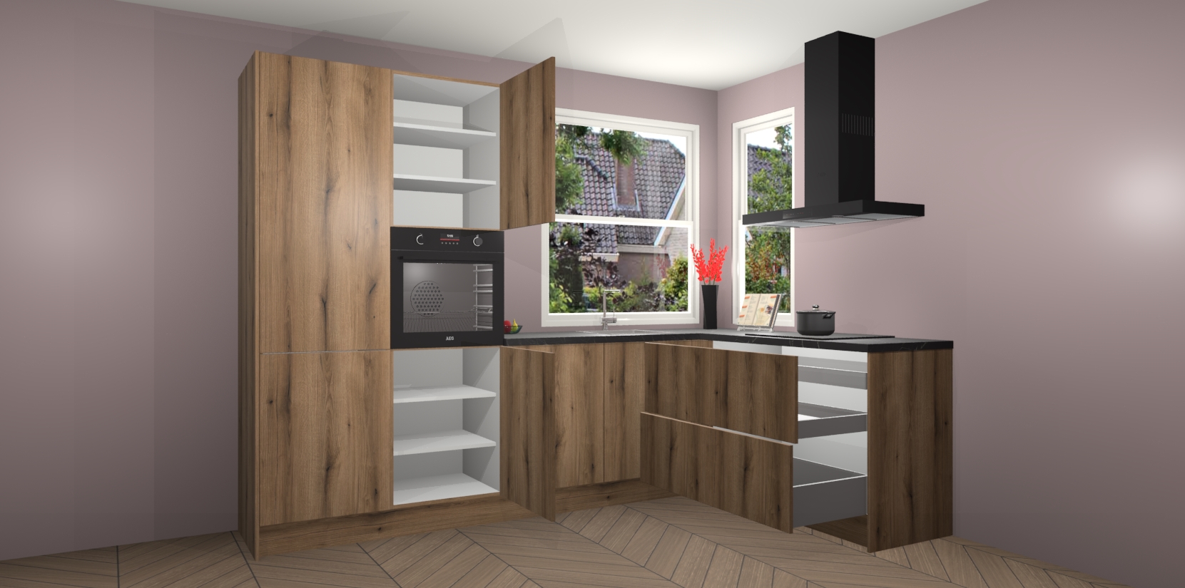 Het is tijd om halsoverkop verliefd te worden op uw droomkeuken, en de Goud Eiken keuken Kotor is precies wat u nodig heeft! Met een moderne, tijdloze constructie en een mix van prachtig design zal deze luxe hoekkeuken zeker opvallen. Maar laat de schoonheid u niet afleiden van de indrukwekkende functies - want onder dit alles schuilt een onovertroffen hoeveelheid lekkers!