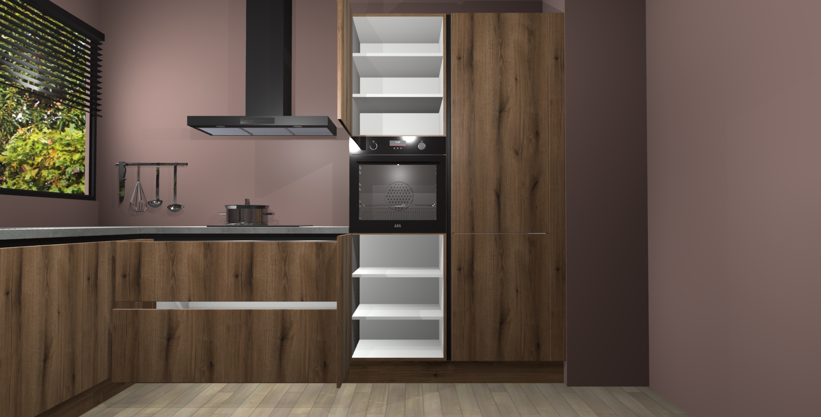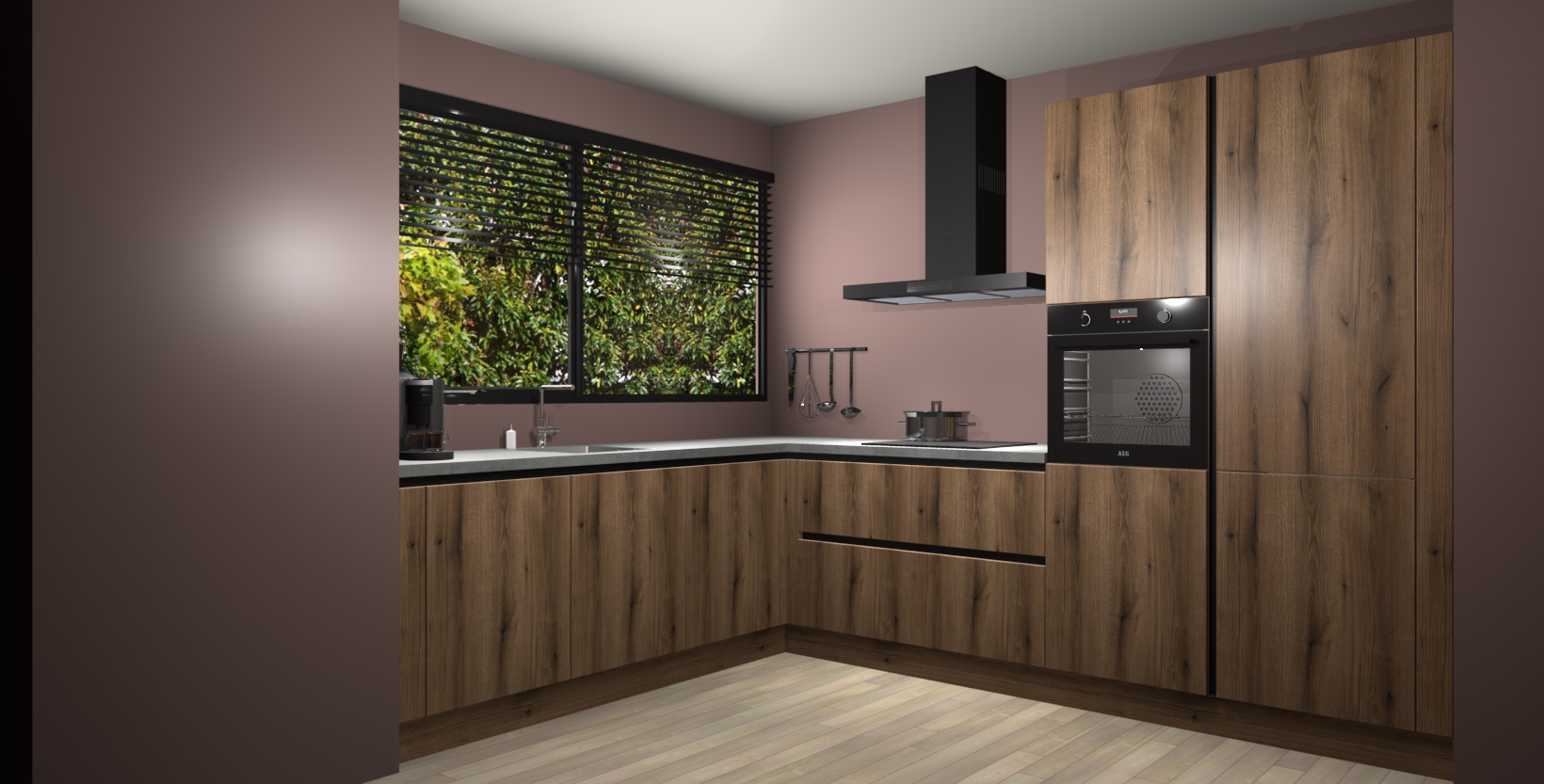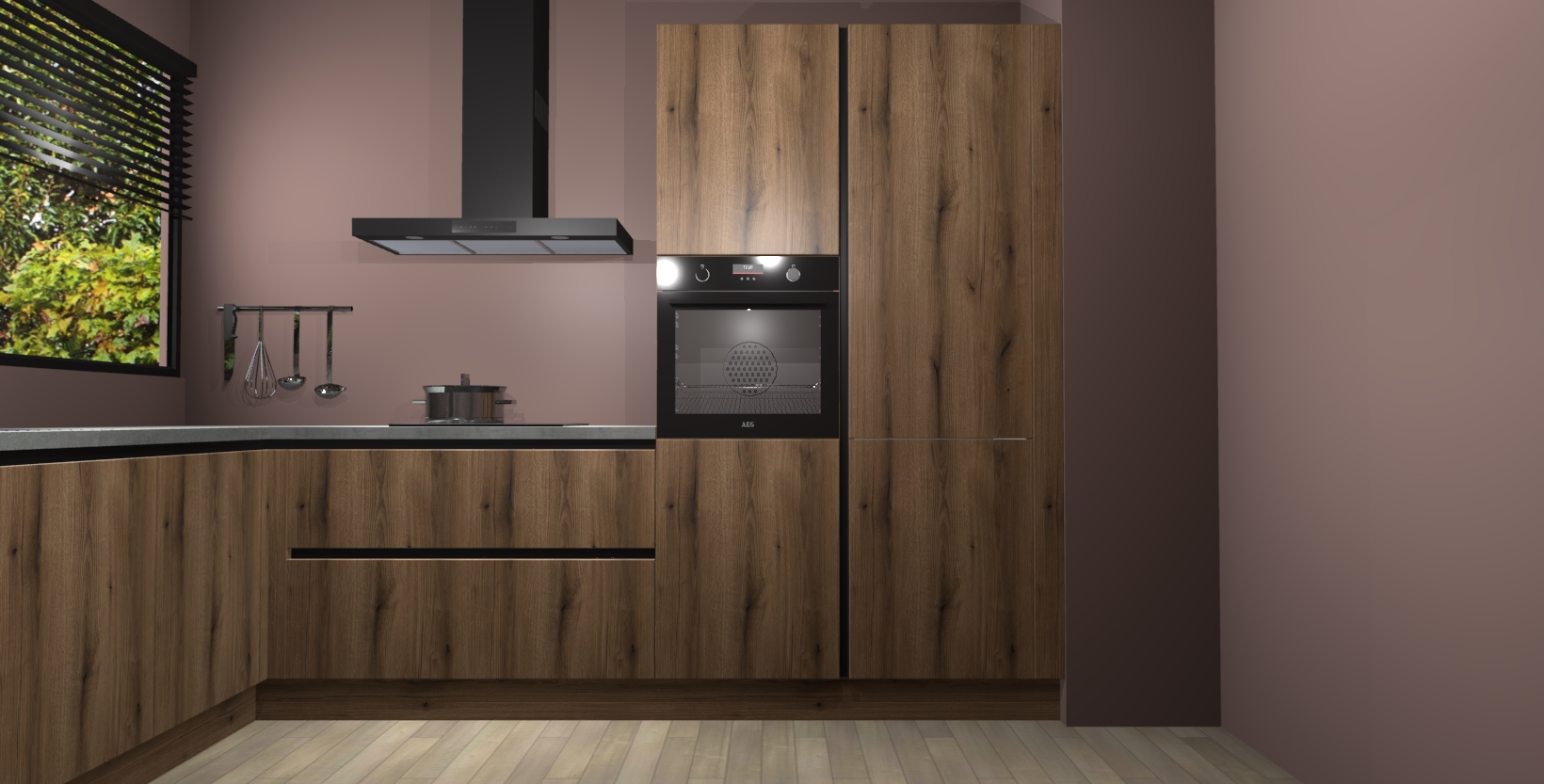 Met een modern, tijdloos design en ruime opslagruimte, zult u zich in no-time thuis voelen in uw nieuwe keuken. Uw leven wordt eenvoudiger met de soft-close deuren die voor het ultieme stille comfort zorgen - geen geluid dat u stoort terwijl u kookt. Ook is de keuken voorzien van 5 ingebouwde apparaten: een oven, inductie kookplaat, afzuigkap, vaatwasser en koelkast. Deze kunnen gemakkelijk na bestelling worden bijgewerkt naar AEG - waardoor uw luxe ervaring compleet is.