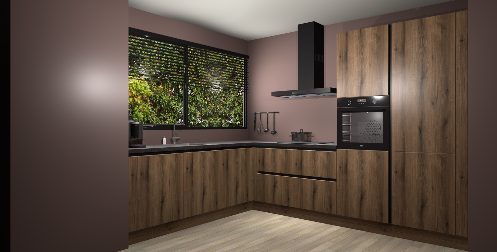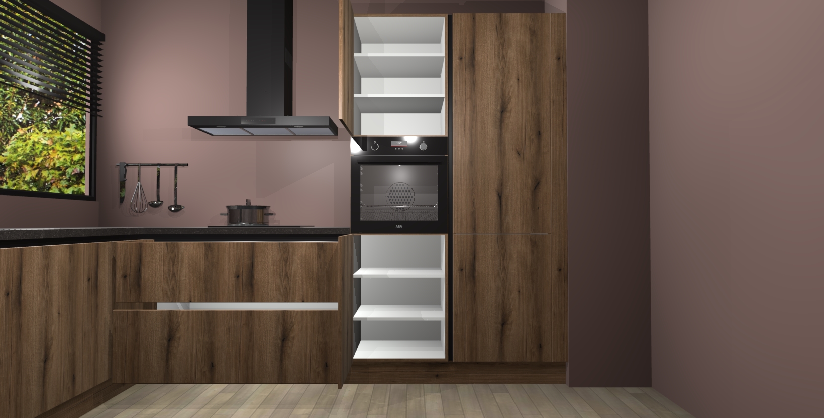 Met een modern, tijdloos design en ruime opslagruimte, zult u zich in no-time thuis voelen in uw nieuwe keuken. Uw leven wordt eenvoudiger met de soft-close deuren die voor het ultieme stille comfort zorgen - geen geluid dat u stoort terwijl u kookt. Ook is de keuken voorzien van 5 ingebouwde apparaten: een oven, inductie kookplaat, afzuigkap, vaatwasser en koelkast. Deze kunnen gemakkelijk na bestelling worden bijgewerkt naar AEG - waardoor uw luxe ervaring compleet is.