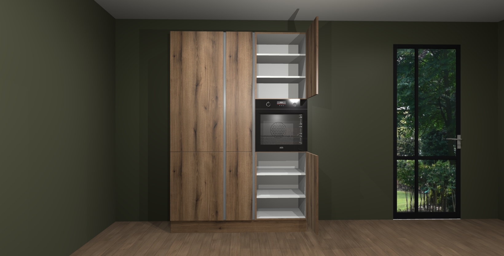 Met een modern, tijdloos design en ruime opslagruimte, zult u zich in no-time thuis voelen in uw nieuwe keuken. Uw leven wordt eenvoudiger met de soft-close deuren die voor het ultieme stille comfort zorgen - geen geluid dat u stoort terwijl u kookt. Ook is de keuken voorzien van 5 ingebouwde apparaten: een oven, inductie kookplaat, afzuigkap, vaatwasser en koelkast. Deze kunnen gemakkelijk na bestelling worden bijgewerkt naar AEG - waardoor uw luxe ervaring compleet is.