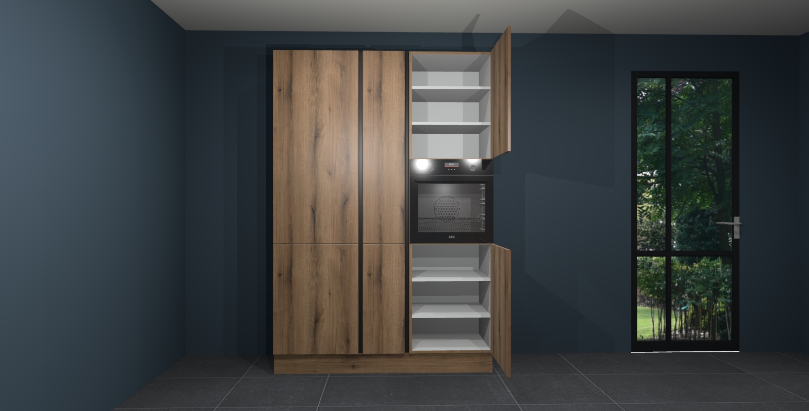 Met een modern, tijdloos design en ruime opslagruimte, zult u zich in no-time thuis voelen in uw nieuwe keuken. Uw leven wordt eenvoudiger met de soft-close deuren die voor het ultieme stille comfort zorgen - geen geluid dat u stoort terwijl u kookt. Ook is de keuken voorzien van 5 ingebouwde apparaten: een oven, inductie kookplaat, afzuigkap, vaatwasser en koelkast. Deze kunnen gemakkelijk na bestelling worden bijgewerkt naar AEG - waardoor uw luxe ervaring compleet is.