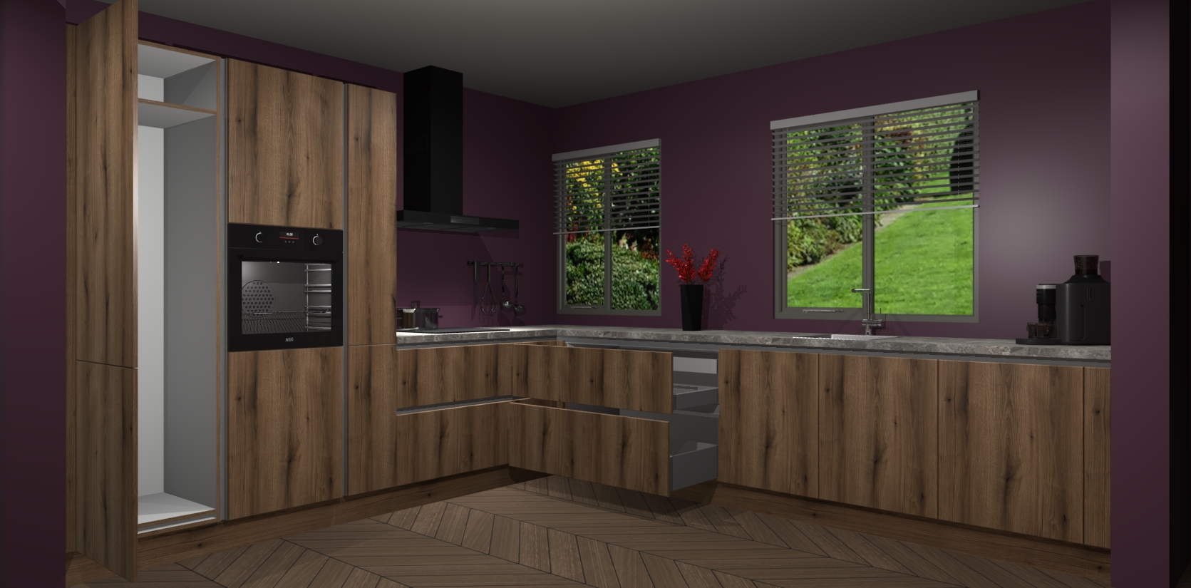 Welkom bij de Gouden Eiken keuken Palermo. Deze prachtige keuken zal de komende jaren het middelpunt van de belangstelling in uw huis zijn. Uitgerust met vijf inbouwapparaten komt u nooit kookgereedschap tekort. Bovendien geeft de warme houtlook elke ruimte een uitnodigende en tijdloze uitstraling.