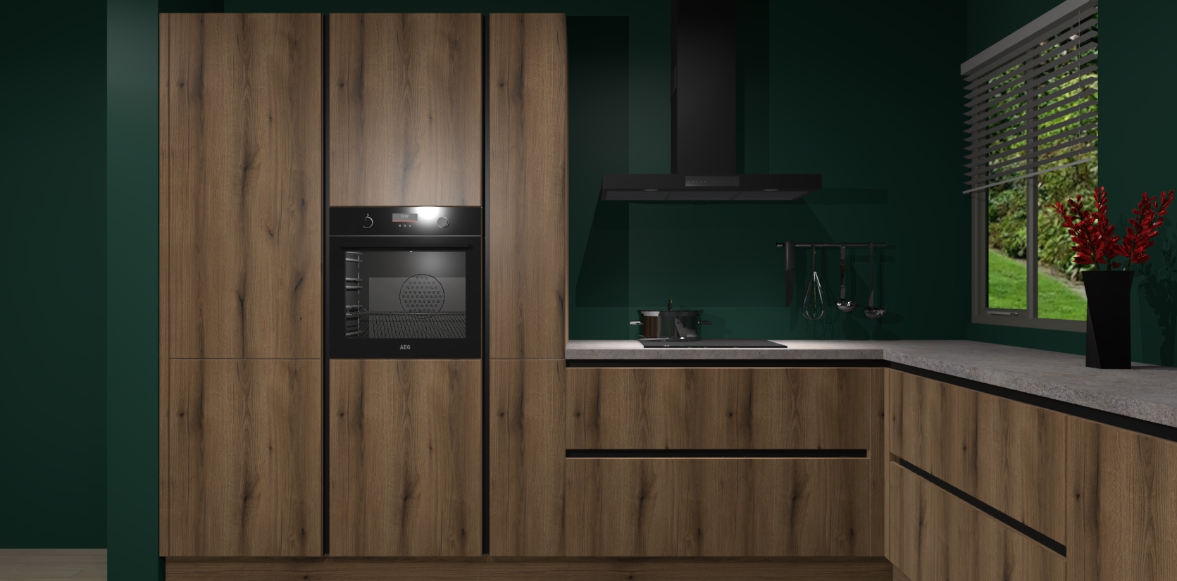 Welkom bij de Gouden Eiken keuken Palermo. Deze prachtige keuken zal de komende jaren het middelpunt van de belangstelling in uw huis zijn. Uitgerust met vijf inbouwapparaten komt u nooit kookgereedschap tekort. Bovendien geeft de warme houtlook elke ruimte een uitnodigende en tijdloze uitstraling.