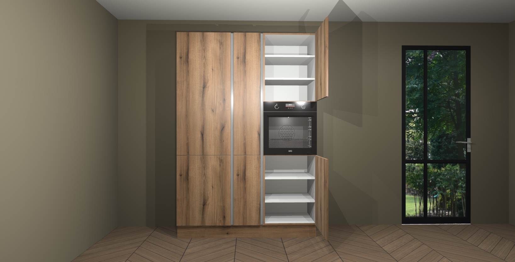 Met een modern, tijdloos design en ruime opslagruimte, zult u zich in no-time thuis voelen in uw nieuwe keuken. Uw leven wordt eenvoudiger met de soft-close deuren die voor het ultieme stille comfort zorgen - geen geluid dat u stoort terwijl u kookt. Ook is de keuken voorzien van 5 ingebouwde apparaten: een oven, inductie kookplaat, afzuigkap, vaatwasser en koelkast. Deze kunnen gemakkelijk na bestelling worden bijgewerkt naar AEG - waardoor uw luxe ervaring compleet is.