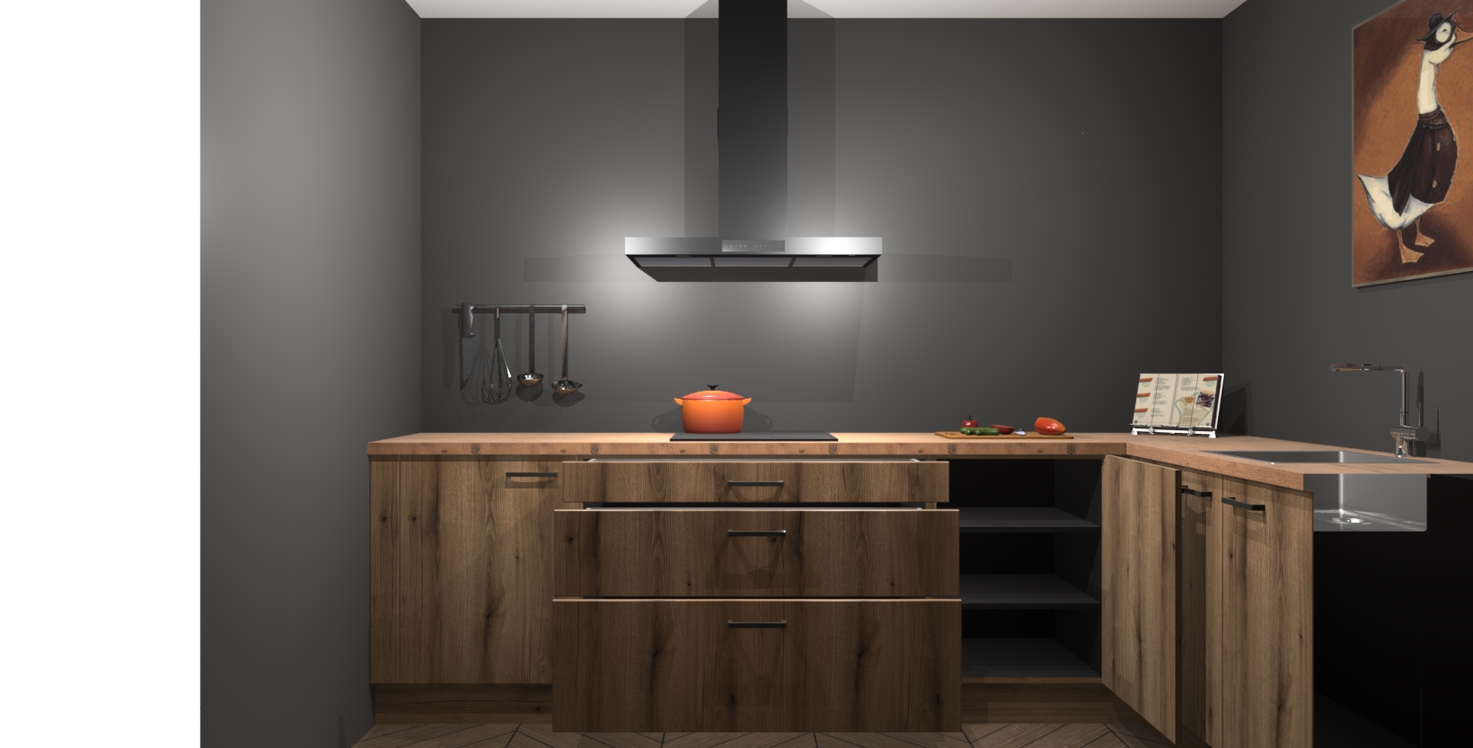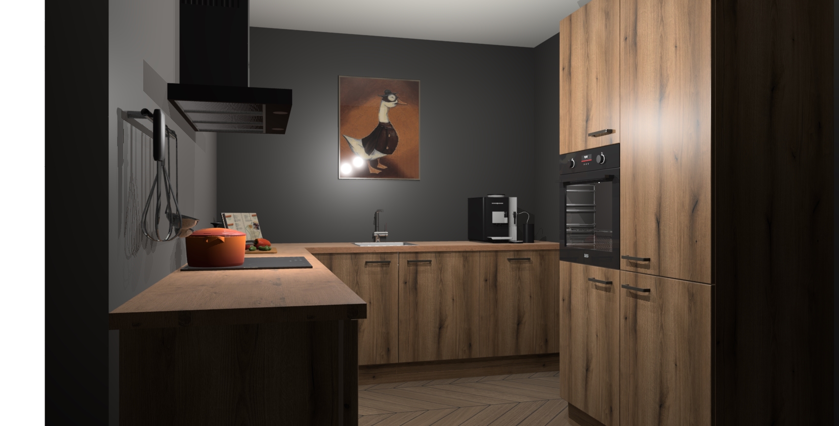 Met een modern, tijdloos design en ruime opslagruimte, zult u zich in no-time thuis voelen in uw nieuwe keuken. Uw leven wordt eenvoudiger met de soft-close deuren die voor het ultieme stille comfort zorgen - geen geluid dat u stoort terwijl u kookt. Ook is de keuken voorzien van 5 ingebouwde apparaten: een oven, inductie kookplaat, afzuigkap, vaatwasser en koelkast. Deze kunnen gemakkelijk na bestelling worden bijgewerkt naar AEG - waardoor uw luxe ervaring compleet is.