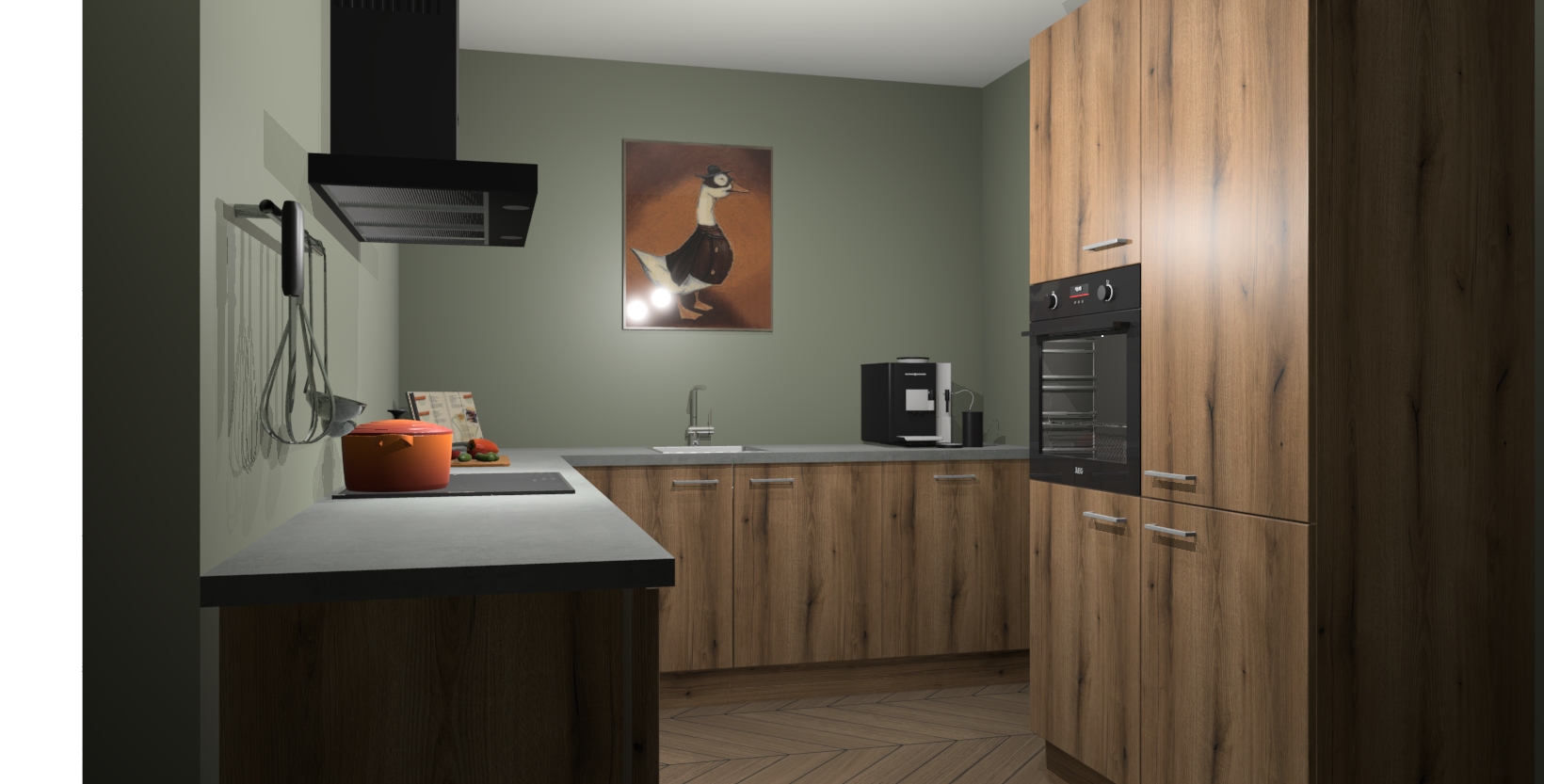 Met een modern, tijdloos design en ruime opslagruimte, zult u zich in no-time thuis voelen in uw nieuwe keuken. Uw leven wordt eenvoudiger met de soft-close deuren die voor het ultieme stille comfort zorgen - geen geluid dat u stoort terwijl u kookt. Ook is de keuken voorzien van 5 ingebouwde apparaten: een oven, inductie kookplaat, afzuigkap, vaatwasser en koelkast. Deze kunnen gemakkelijk na bestelling worden bijgewerkt naar AEG - waardoor uw luxe ervaring compleet is.