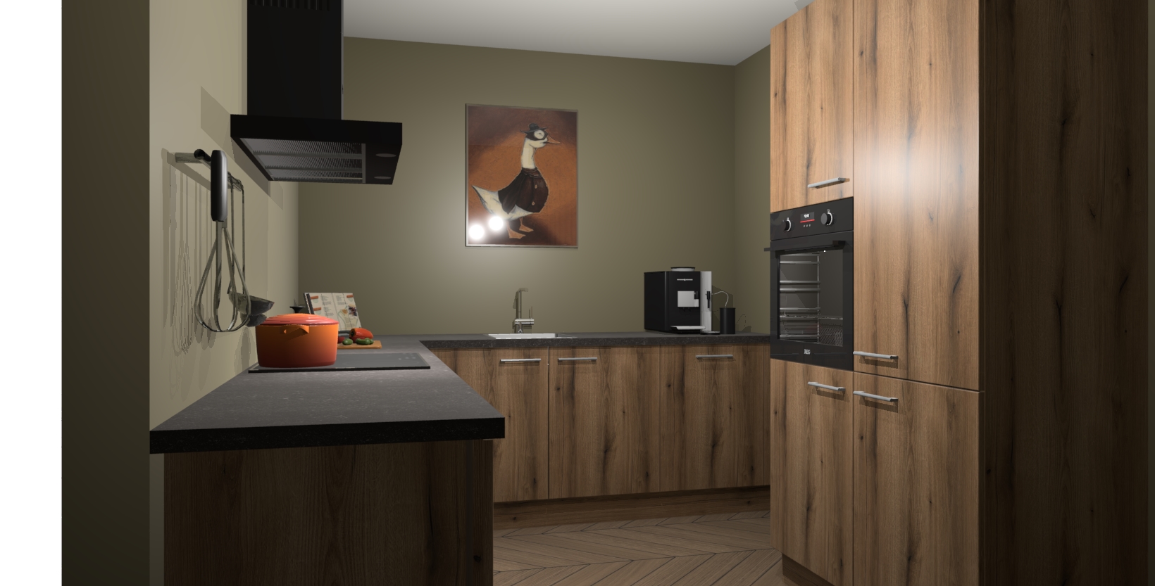 Met een modern, tijdloos design en ruime opslagruimte, zult u zich in no-time thuis voelen in uw nieuwe keuken. Uw leven wordt eenvoudiger met de soft-close deuren die voor het ultieme stille comfort zorgen - geen geluid dat u stoort terwijl u kookt. Ook is de keuken voorzien van 5 ingebouwde apparaten: een oven, inductie kookplaat, afzuigkap, vaatwasser en koelkast. Deze kunnen gemakkelijk na bestelling worden bijgewerkt naar AEG - waardoor uw luxe ervaring compleet is.