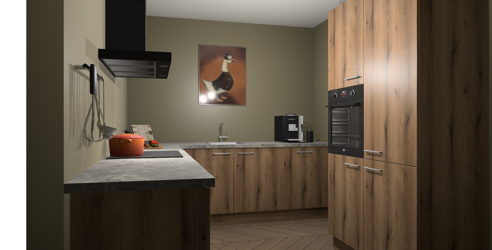 Met een modern, tijdloos design en ruime opslagruimte, zult u zich in no-time thuis voelen in uw nieuwe keuken. Uw leven wordt eenvoudiger met de soft-close deuren die voor het ultieme stille comfort zorgen - geen geluid dat u stoort terwijl u kookt. Ook is de keuken voorzien van 5 ingebouwde apparaten: een oven, inductie kookplaat, afzuigkap, vaatwasser en koelkast. Deze kunnen gemakkelijk na bestelling worden bijgewerkt naar AEG - waardoor uw luxe ervaring compleet is.