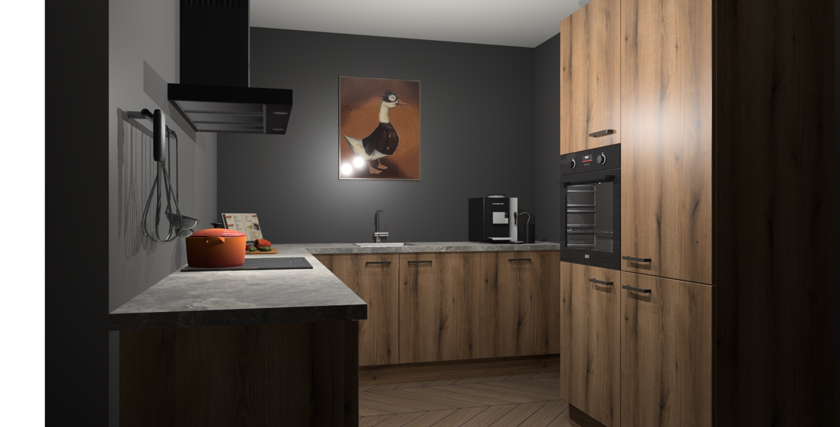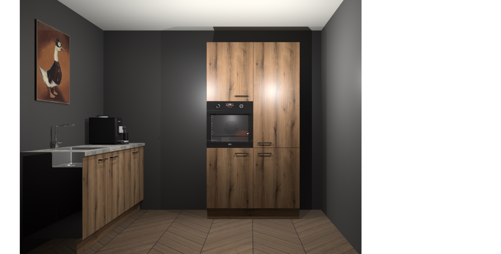 Met een modern, tijdloos design en ruime opslagruimte, zult u zich in no-time thuis voelen in uw nieuwe keuken. Uw leven wordt eenvoudiger met de soft-close deuren die voor het ultieme stille comfort zorgen - geen geluid dat u stoort terwijl u kookt. Ook is de keuken voorzien van 5 ingebouwde apparaten: een oven, inductie kookplaat, afzuigkap, vaatwasser en koelkast. Deze kunnen gemakkelijk na bestelling worden bijgewerkt naar AEG - waardoor uw luxe ervaring compleet is.