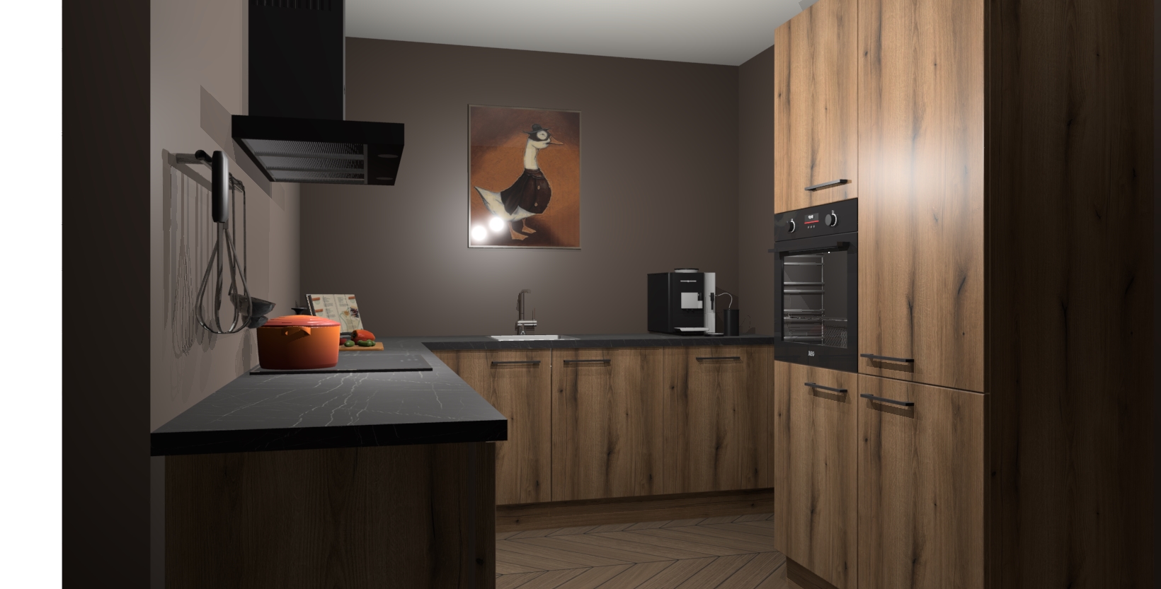 Met een modern, tijdloos design en ruime opslagruimte, zult u zich in no-time thuis voelen in uw nieuwe keuken. Uw leven wordt eenvoudiger met de soft-close deuren die voor het ultieme stille comfort zorgen - geen geluid dat u stoort terwijl u kookt. Ook is de keuken voorzien van 5 ingebouwde apparaten: een oven, inductie kookplaat, afzuigkap, vaatwasser en koelkast. Deze kunnen gemakkelijk na bestelling worden bijgewerkt naar AEG - waardoor uw luxe ervaring compleet is.