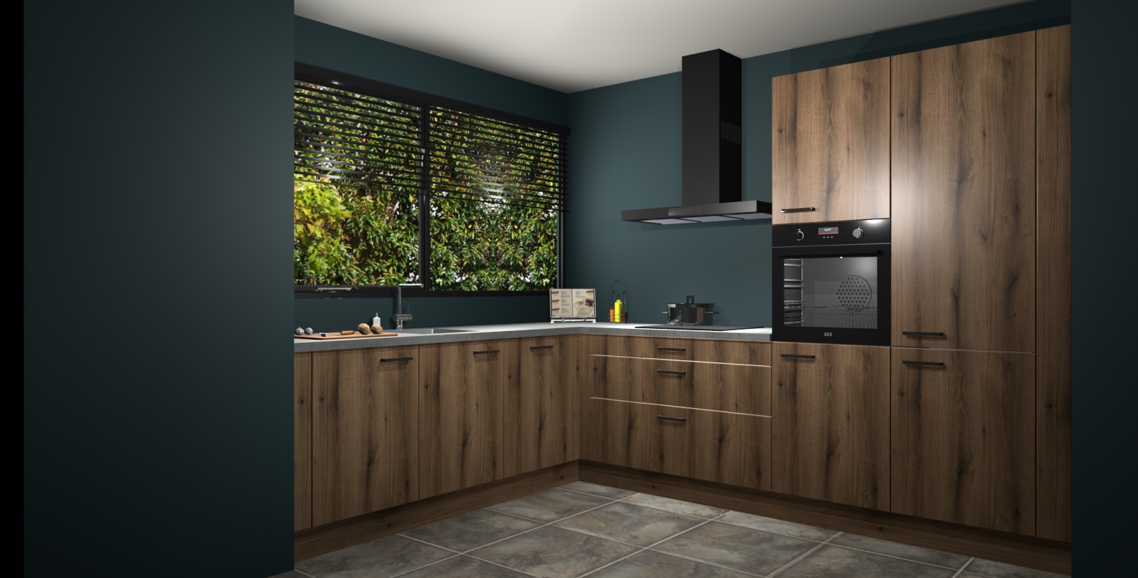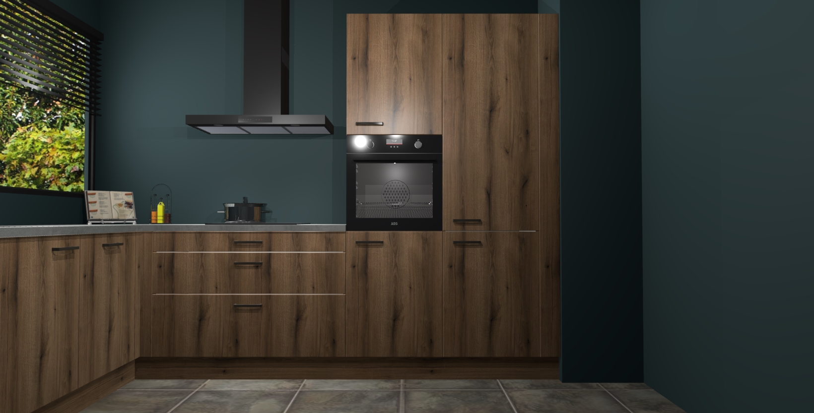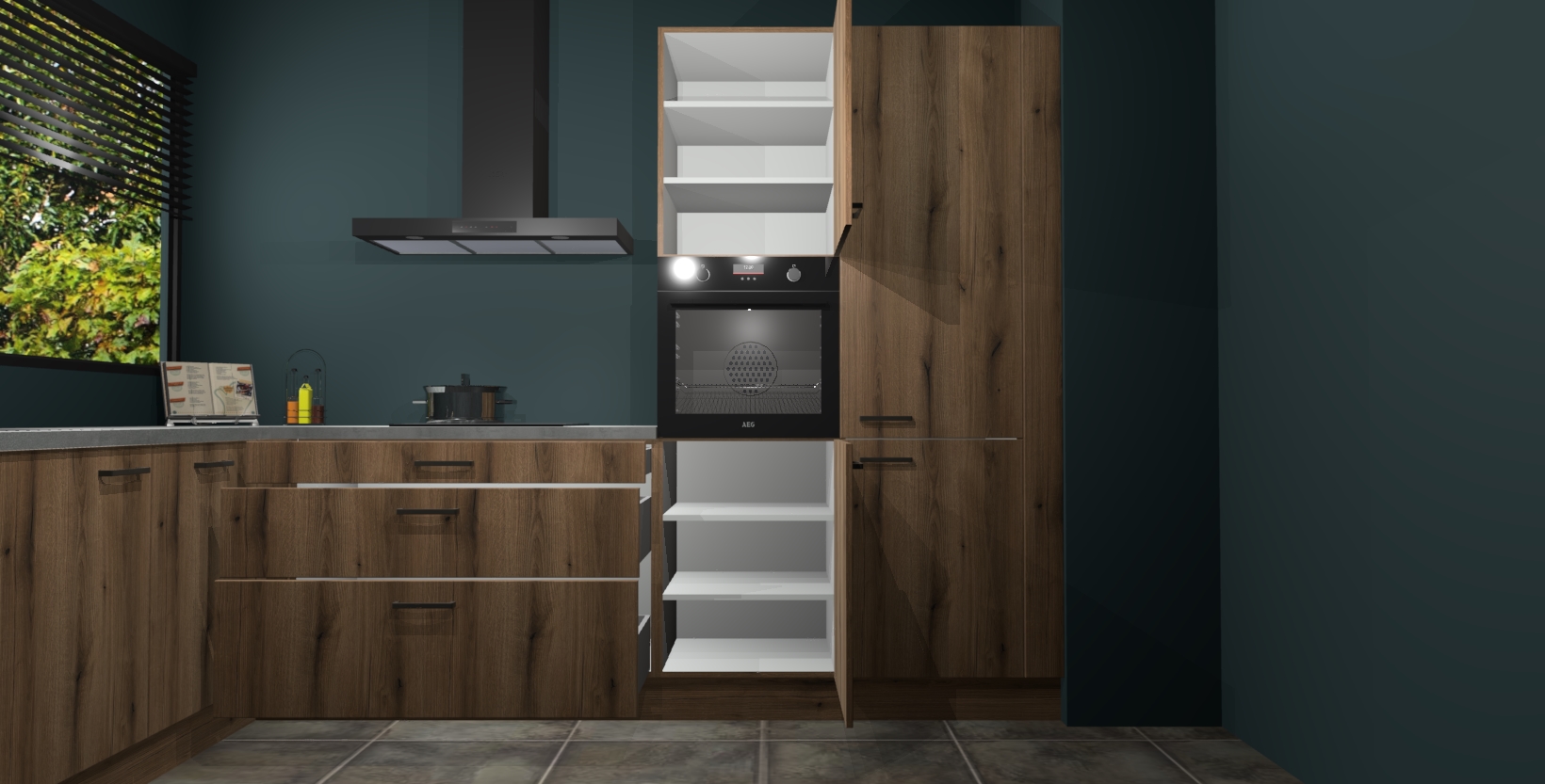 Met een modern, tijdloos design en ruime opslagruimte, zult u zich in no-time thuis voelen in uw nieuwe keuken. Uw leven wordt eenvoudiger met de soft-close deuren die voor het ultieme stille comfort zorgen - geen geluid dat u stoort terwijl u kookt. Ook is de keuken voorzien van 5 ingebouwde apparaten: een oven, inductie kookplaat, afzuigkap, vaatwasser en koelkast. Deze kunnen gemakkelijk na bestelling worden bijgewerkt naar AEG - waardoor uw luxe ervaring compleet is.