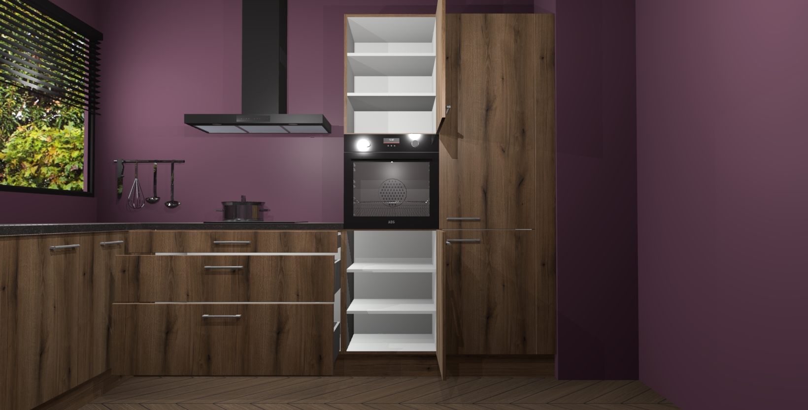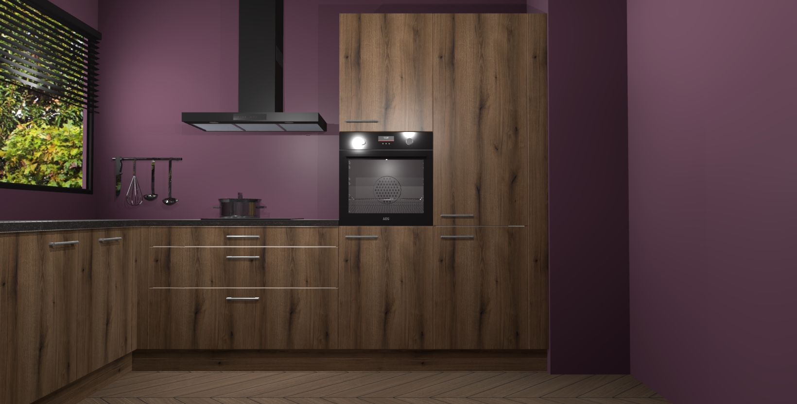 Met een modern, tijdloos design en ruime opslagruimte, zult u zich in no-time thuis voelen in uw nieuwe keuken. Uw leven wordt eenvoudiger met de soft-close deuren die voor het ultieme stille comfort zorgen - geen geluid dat u stoort terwijl u kookt. Ook is de keuken voorzien van 5 ingebouwde apparaten: een oven, inductie kookplaat, afzuigkap, vaatwasser en koelkast. Deze kunnen gemakkelijk na bestelling worden bijgewerkt naar AEG - waardoor uw luxe ervaring compleet is.