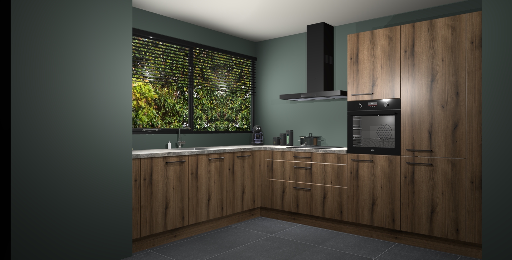 Met een modern, tijdloos design en ruime opslagruimte, zult u zich in no-time thuis voelen in uw nieuwe keuken. Uw leven wordt eenvoudiger met de soft-close deuren die voor het ultieme stille comfort zorgen - geen geluid dat u stoort terwijl u kookt. Ook is de keuken voorzien van 5 ingebouwde apparaten: een oven, inductie kookplaat, afzuigkap, vaatwasser en koelkast. Deze kunnen gemakkelijk na bestelling worden bijgewerkt naar AEG - waardoor uw luxe ervaring compleet is.