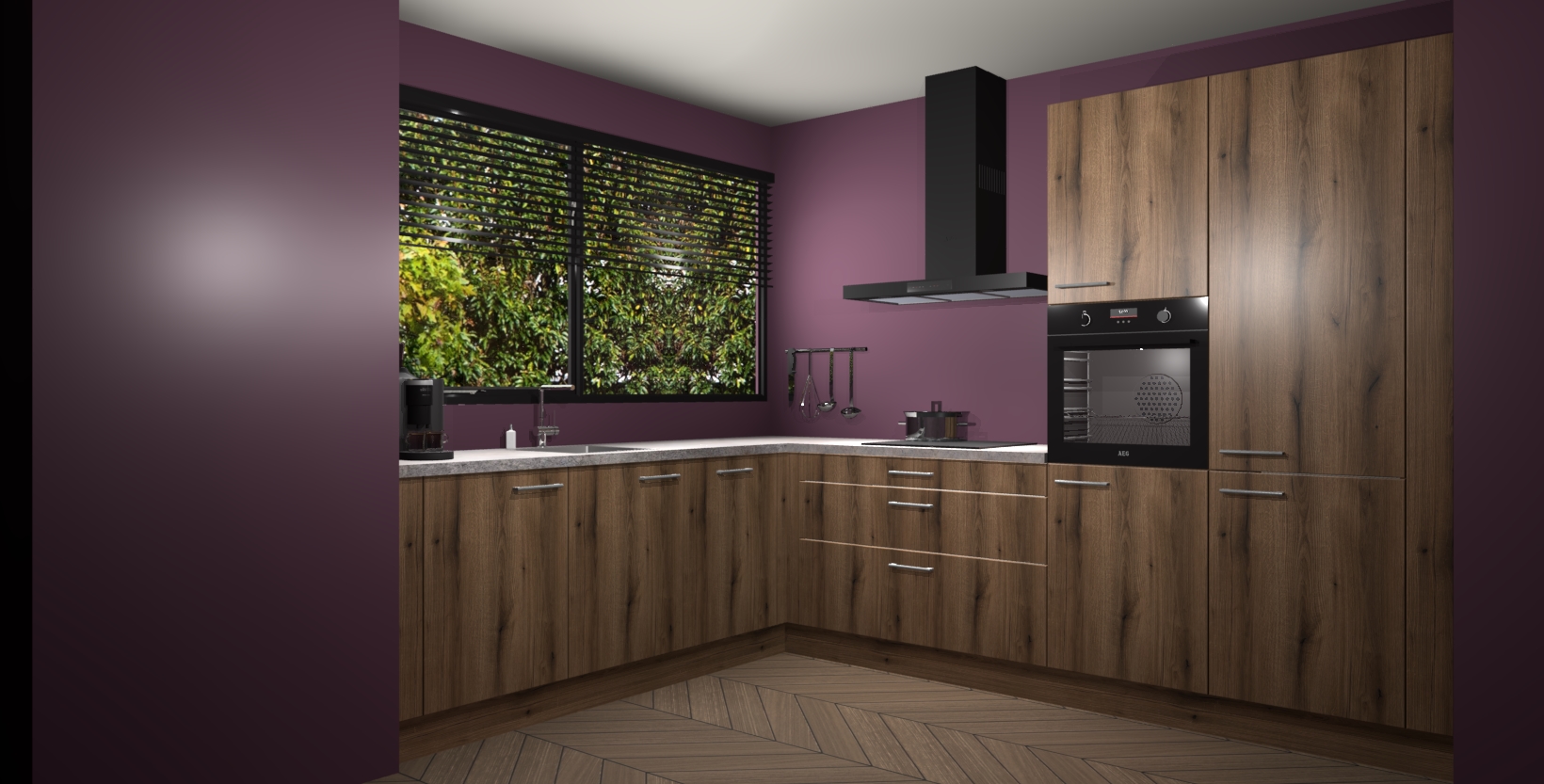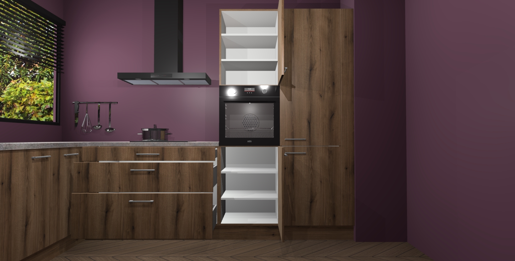 Met een modern, tijdloos design en ruime opslagruimte, zult u zich in no-time thuis voelen in uw nieuwe keuken. Uw leven wordt eenvoudiger met de soft-close deuren die voor het ultieme stille comfort zorgen - geen geluid dat u stoort terwijl u kookt. Ook is de keuken voorzien van 5 ingebouwde apparaten: een oven, inductie kookplaat, afzuigkap, vaatwasser en koelkast. Deze kunnen gemakkelijk na bestelling worden bijgewerkt naar AEG - waardoor uw luxe ervaring compleet is.