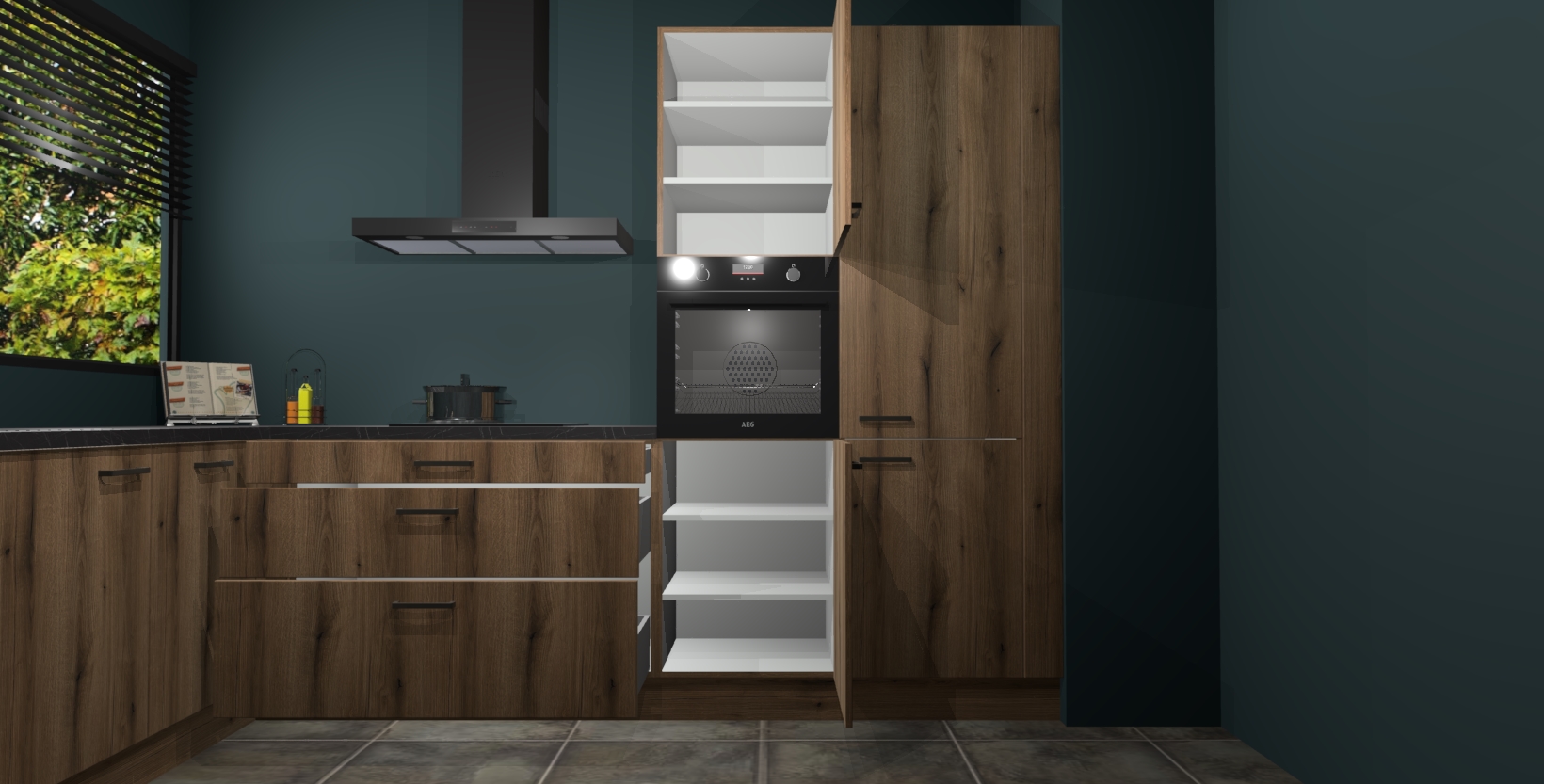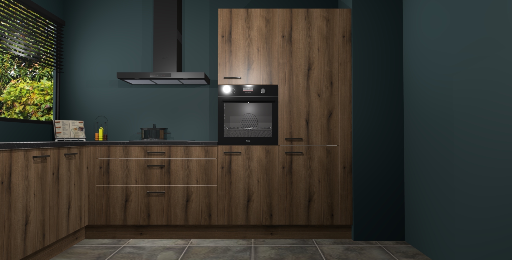 Met een modern, tijdloos design en ruime opslagruimte, zult u zich in no-time thuis voelen in uw nieuwe keuken. Uw leven wordt eenvoudiger met de soft-close deuren die voor het ultieme stille comfort zorgen - geen geluid dat u stoort terwijl u kookt. Ook is de keuken voorzien van 5 ingebouwde apparaten: een oven, inductie kookplaat, afzuigkap, vaatwasser en koelkast. Deze kunnen gemakkelijk na bestelling worden bijgewerkt naar AEG - waardoor uw luxe ervaring compleet is.