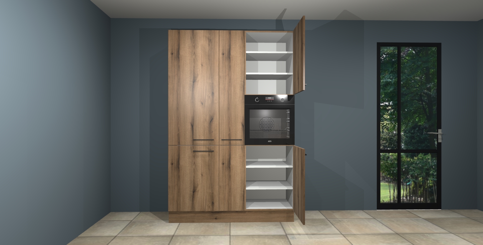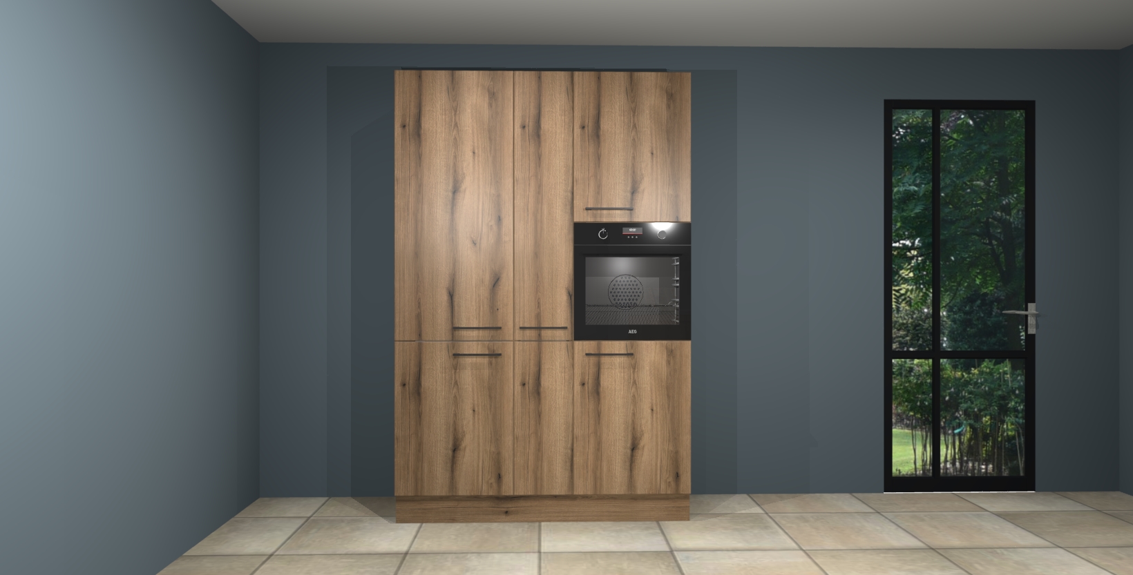 Met een modern, tijdloos design en ruime opslagruimte, zult u zich in no-time thuis voelen in uw nieuwe keuken. Uw leven wordt eenvoudiger met de soft-close deuren die voor het ultieme stille comfort zorgen - geen geluid dat u stoort terwijl u kookt. Ook is de keuken voorzien van 5 ingebouwde apparaten: een oven, inductie kookplaat, afzuigkap, vaatwasser en koelkast. Deze kunnen gemakkelijk na bestelling worden bijgewerkt naar AEG - waardoor uw luxe ervaring compleet is.