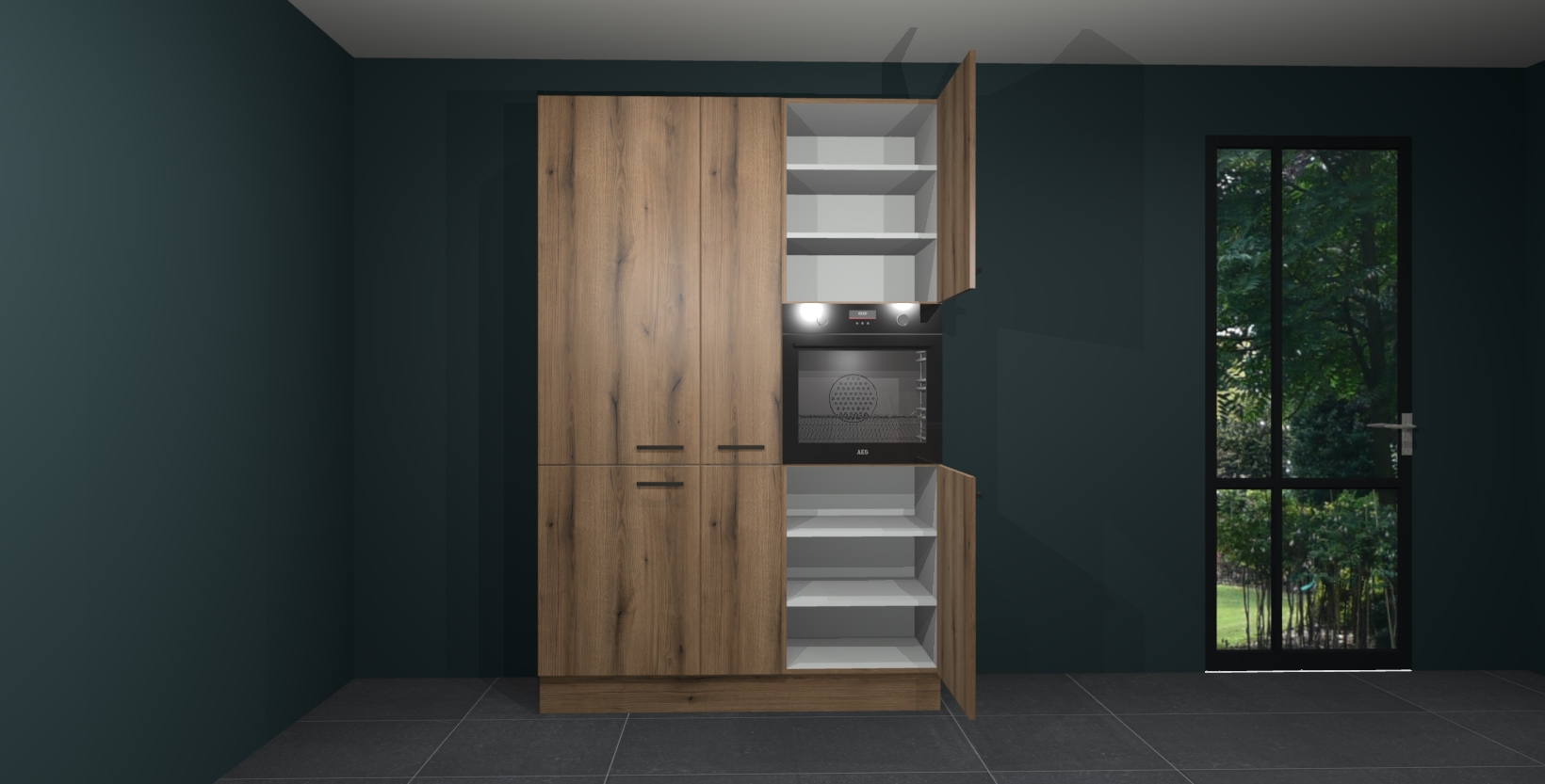 Met een modern, tijdloos design en ruime opslagruimte, zult u zich in no-time thuis voelen in uw nieuwe keuken. Uw leven wordt eenvoudiger met de soft-close deuren die voor het ultieme stille comfort zorgen - geen geluid dat u stoort terwijl u kookt. Ook is de keuken voorzien van 5 ingebouwde apparaten: een oven, inductie kookplaat, afzuigkap, vaatwasser en koelkast. Deze kunnen gemakkelijk na bestelling worden bijgewerkt naar AEG - waardoor uw luxe ervaring compleet is.