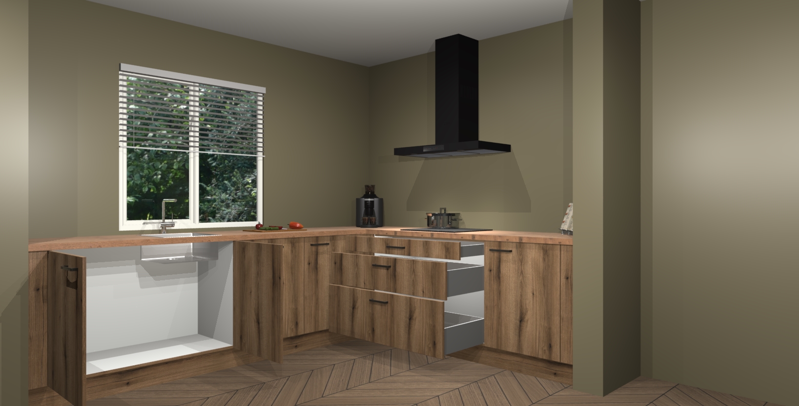 - Bij een hoekwerkblad zijn de hoeken in gevreesd en op maat gemaakt