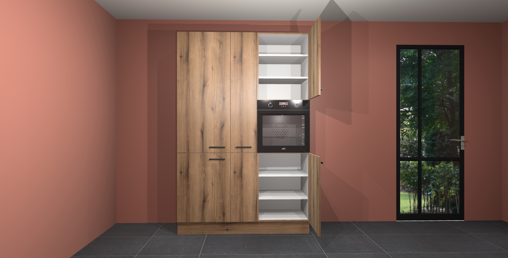 Met een modern, tijdloos design en ruime opslagruimte, zult u zich in no-time thuis voelen in uw nieuwe keuken. Uw leven wordt eenvoudiger met de soft-close deuren die voor het ultieme stille comfort zorgen - geen geluid dat u stoort terwijl u kookt. Ook is de keuken voorzien van 5 ingebouwde apparaten: een oven, inductie kookplaat, afzuigkap, vaatwasser en koelkast. Deze kunnen gemakkelijk na bestelling worden bijgewerkt naar AEG - waardoor uw luxe ervaring compleet is.