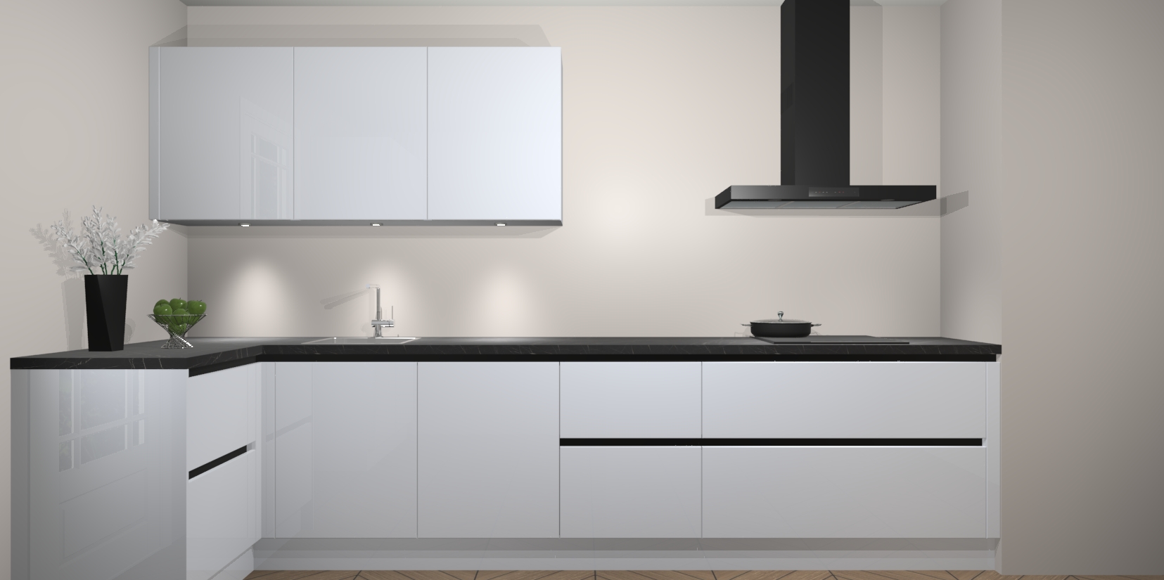 Inclusief plinten, stelpoten en werkblad