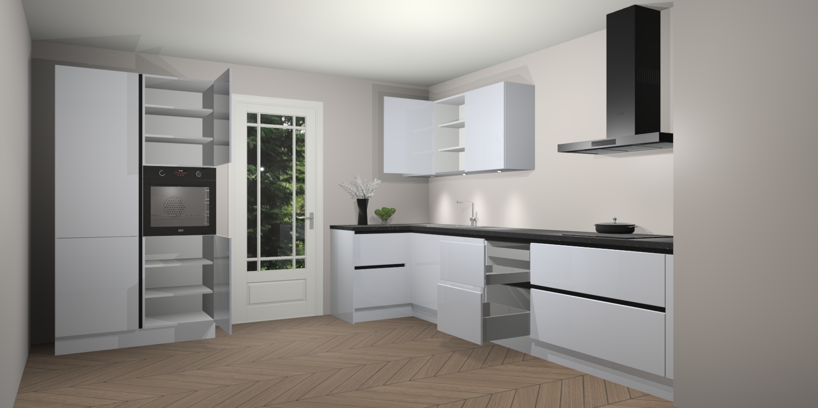 Dankzij de ruime opbergruimte kan alles zijn plaats hebben en gemakkelijk teruggevonden worden. En als uw behoeften veranderen na aankoop van ons product, heeft u na bestellen de mogelijkheid om de apparaten te upgraden, van oven tot combimagnetron, tot een kookplaat met geïntegreerde afzuigkap of het merk upgraden naar AEG. Mis deze unieke kans op een moeiteloze upgrade niet. De Hoogglans sneeuwwitte greeploze keuken Cali, is luxueus, stijlvol en betaalbaar - het is tijd om te gaan leven zoals u verdient! Wees moedig en laat ons voor u zorgen om uw kookkunsten te verbeteren met onze prachtige Hoogglans sneeuwwitte greeploze keuken Cali!