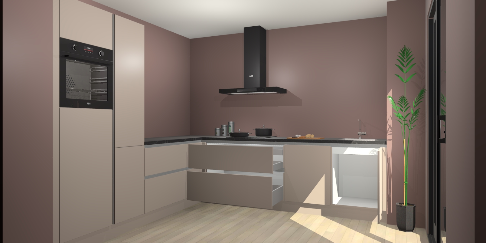 Inclusief plinten, stelpoten en werkblad