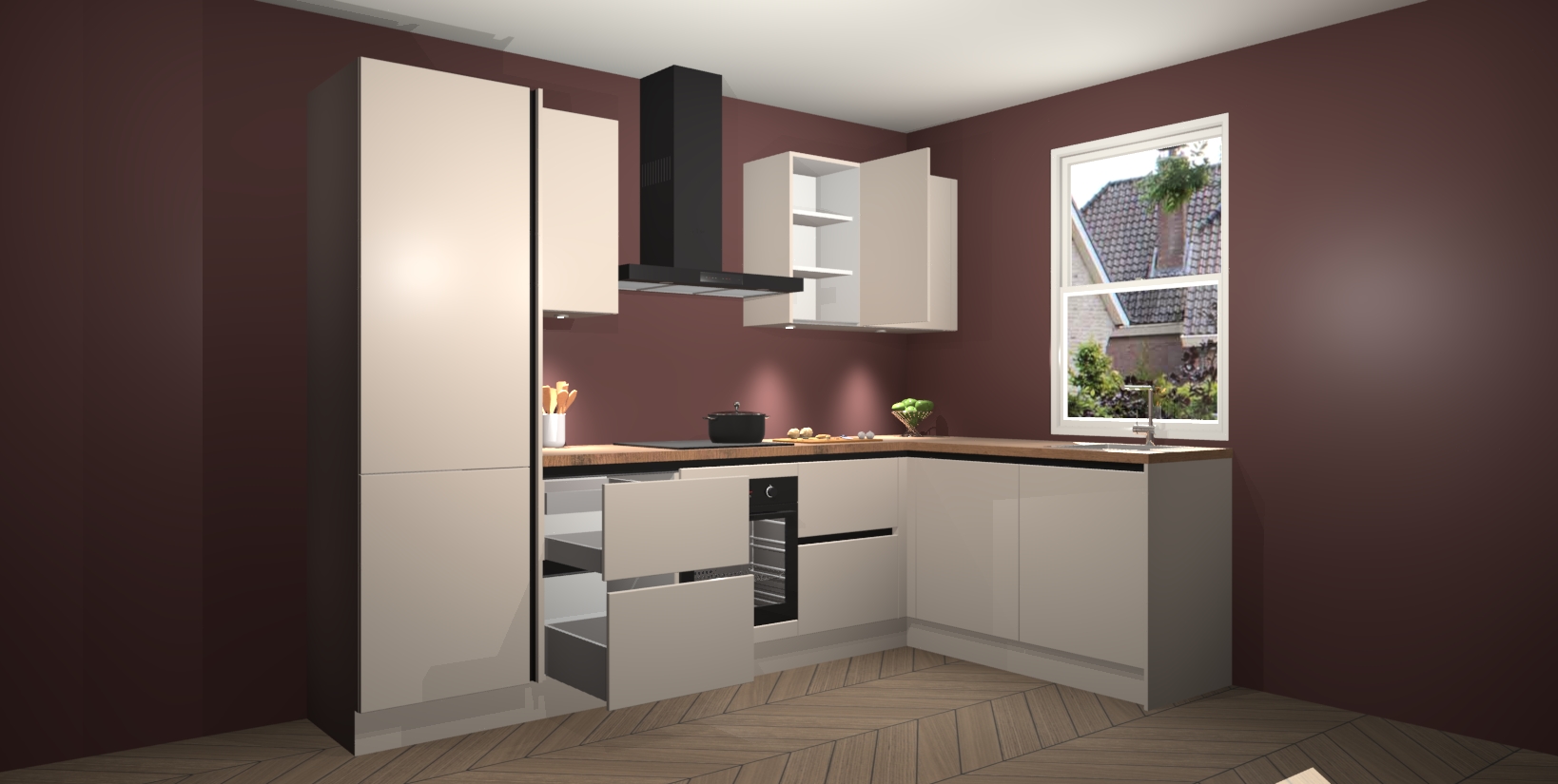 Inclusief plinten, stelpoten en werkblad