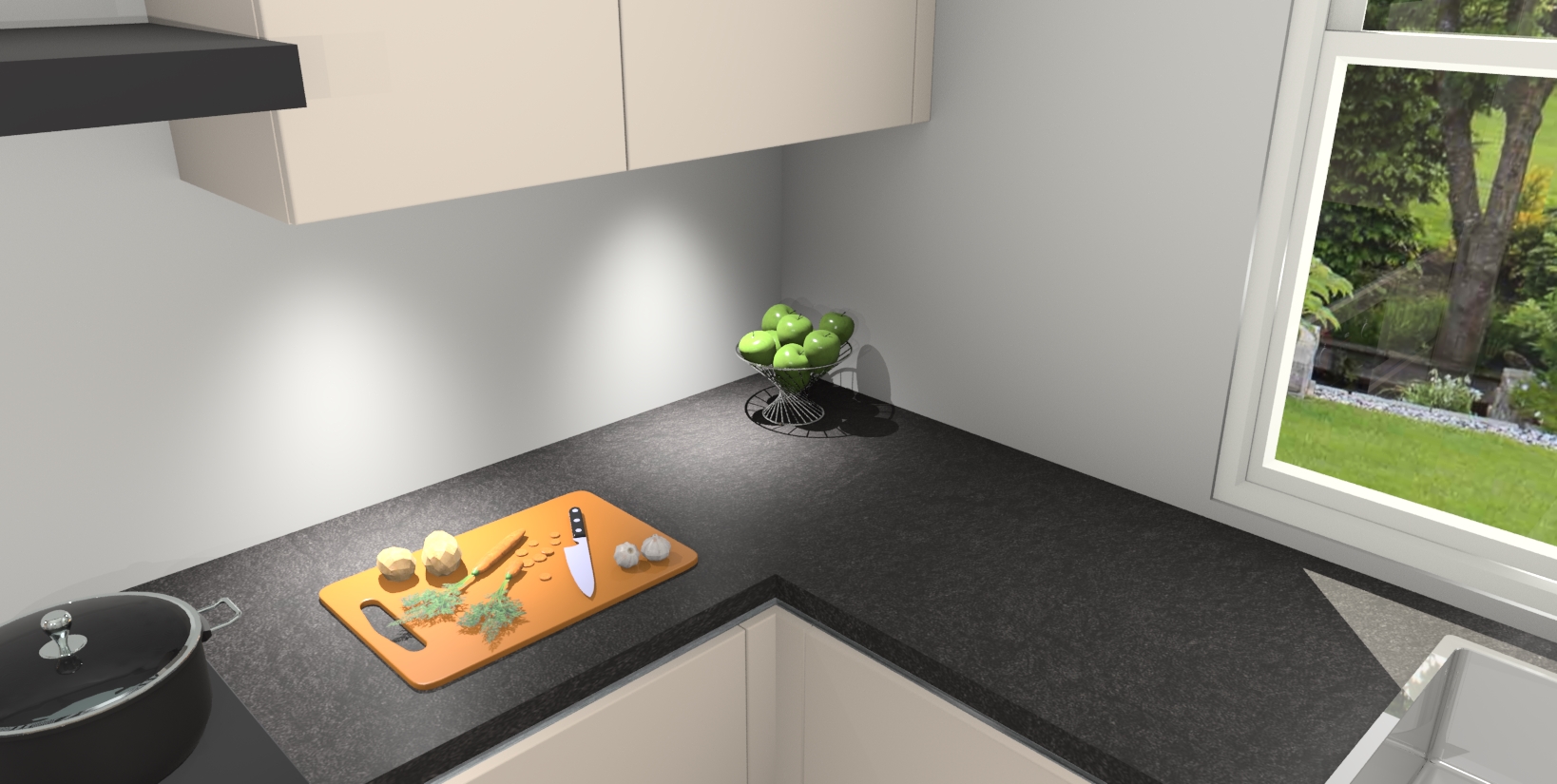 • Bij een hoekwerkblad zijn de hoeken in gevreesd en op maat gemaakt