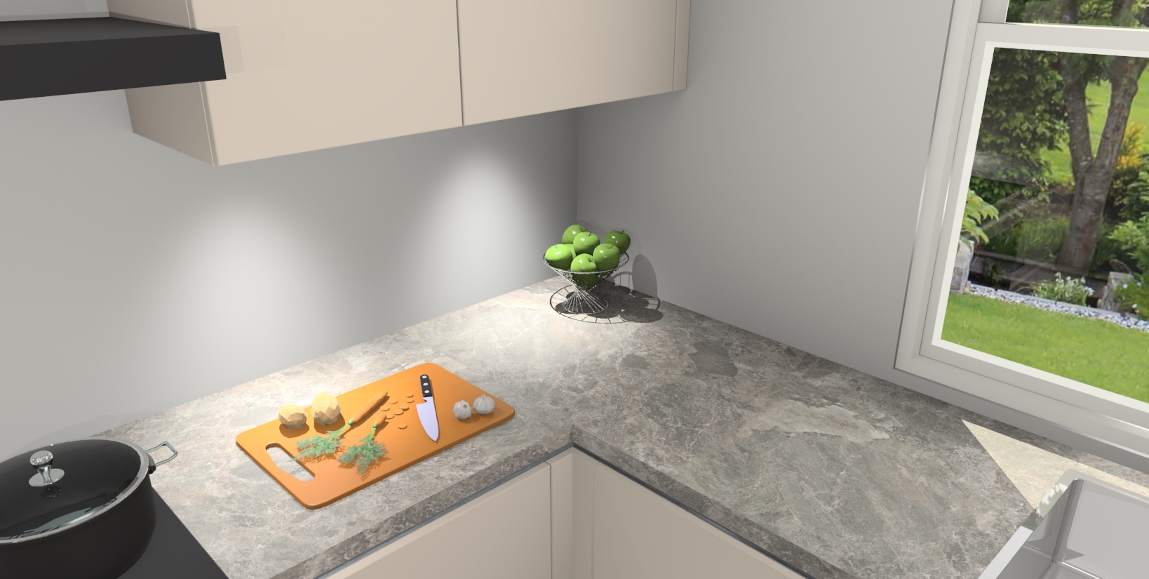 - Bij een hoekwerkblad zijn de hoeken in gevreesd en op maat gemaakt