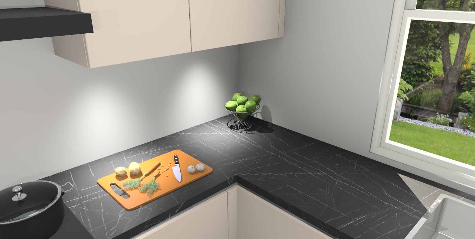 • Bij een hoekwerkblad zijn de hoeken in gevreesd en op maat gemaakt