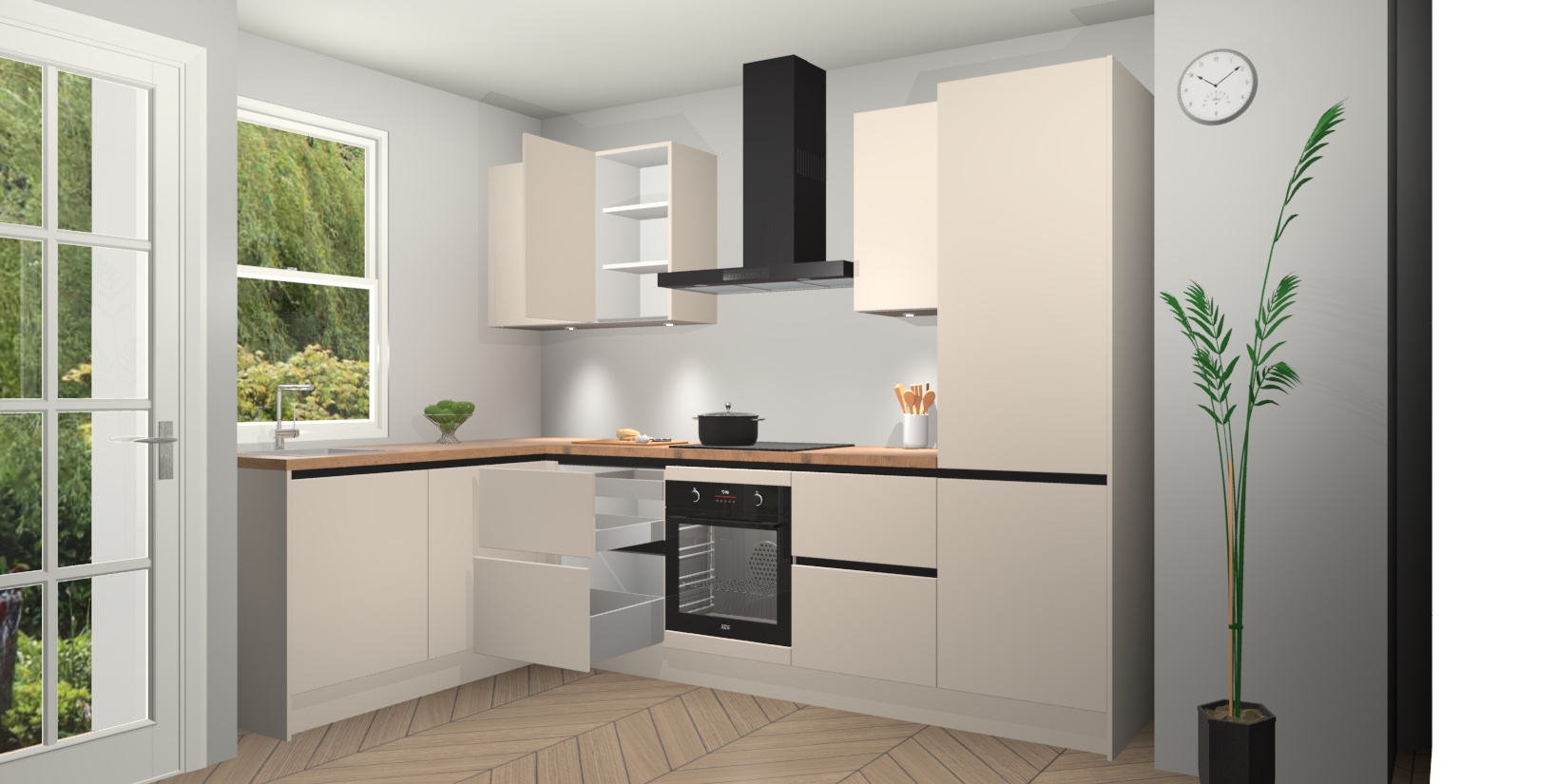 Bent u op zoek naar een strakke, moderne hoekkeuken die uw huis oppept en een moderne uitstraling geeft? Kijk dan niet verder dan de kasjmier greeploze keuken Beijing. Deze verbluffende hoekkeuken tilt hedendaags design naar een hoger niveau. Qua stijl is deze chique hoekkeuken voorzien van kasjmier accenten, om een strakke maar opvallende look te creëren. De binnenkant van de kasten is afgewerkt in dezelfde prachtige kasjmier kleur voor extra esthetische aantrekkingskracht.