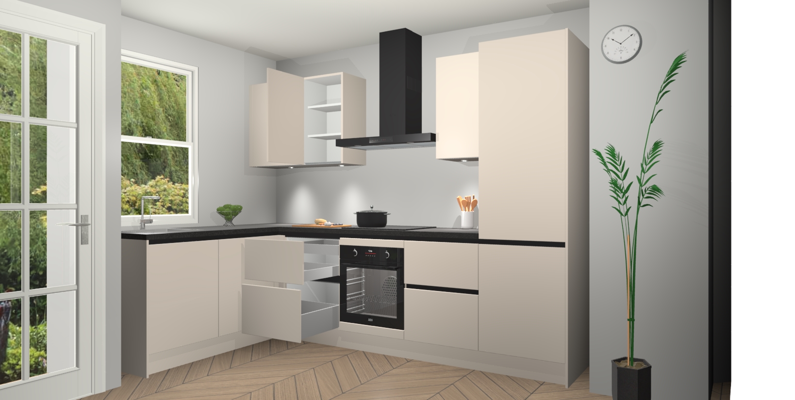 Bent u op zoek naar een strakke, moderne hoekkeuken die uw huis oppept en een moderne uitstraling geeft? Kijk dan niet verder dan de kasjmier greeploze keuken Beijing. Deze verbluffende hoekkeuken tilt hedendaags design naar een hoger niveau. Qua stijl is deze chique hoekkeuken voorzien van kasjmier accenten, om een strakke maar opvallende look te creëren. De binnenkant van de kasten is afgewerkt in dezelfde prachtige kasjmier kleur voor extra esthetische aantrekkingskracht.