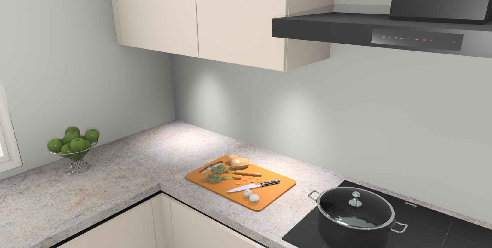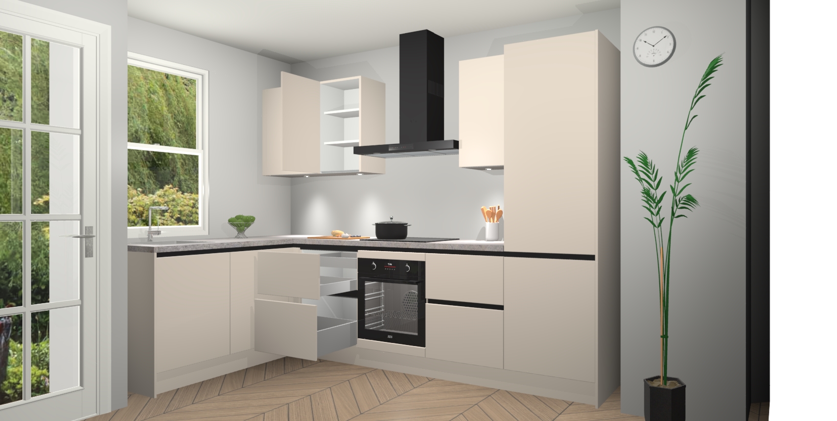 Inclusief plinten, stelpoten en werkblad