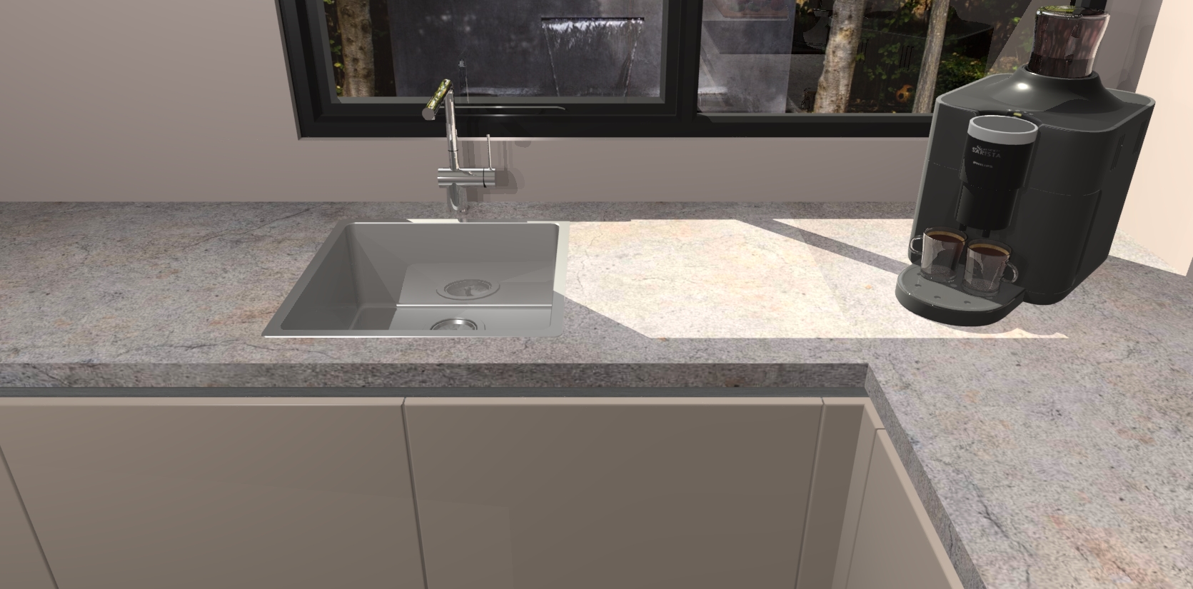 - De spoelbak is nog niet in gevreesd. Dit dient tijdens het werk gedaan te worden