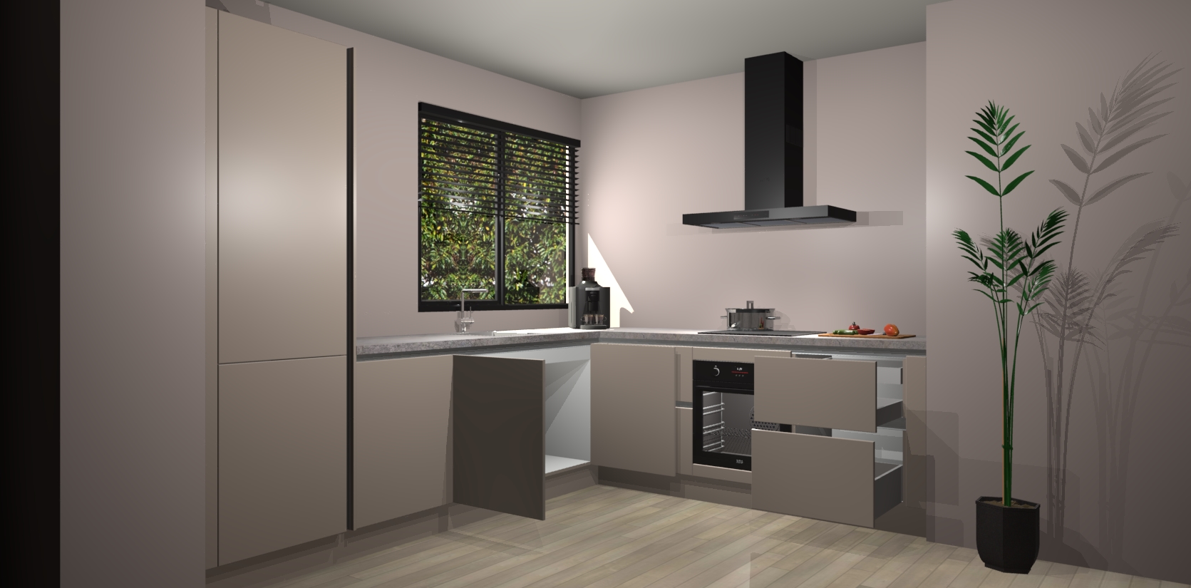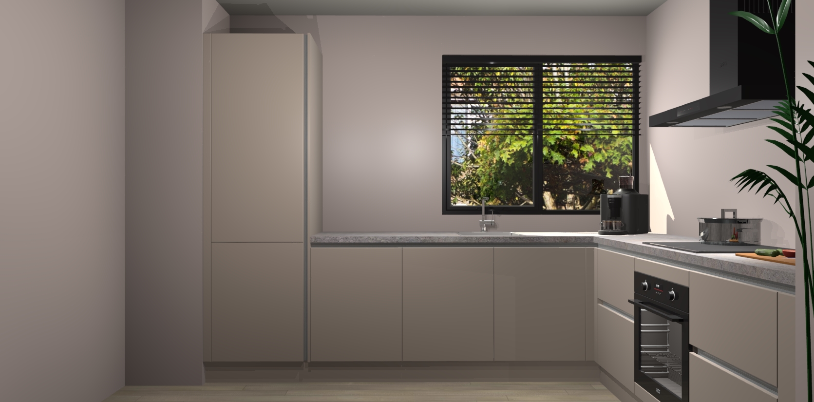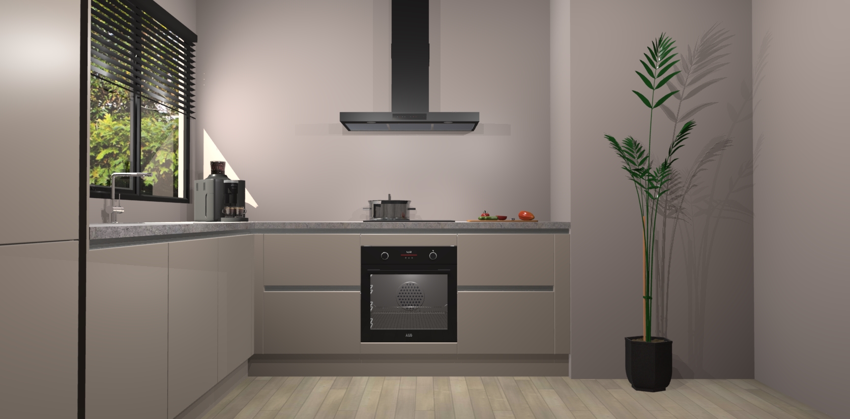 Met een modern, tijdloos design en ruime opslagruimte, zult u zich in no-time thuis voelen in uw nieuwe keuken. Uw leven wordt eenvoudiger met de soft-close deuren die voor het ultieme stille comfort zorgen - geen geluid dat u stoort terwijl u kookt. Ook is de keuken voorzien van 5 ingebouwde apparaten: een oven, inductie kookplaat, afzuigkap, vaatwasser en koelkast. Deze kunnen gemakkelijk na bestelling worden bijgewerkt naar AEG - waardoor uw luxe ervaring compleet is.
