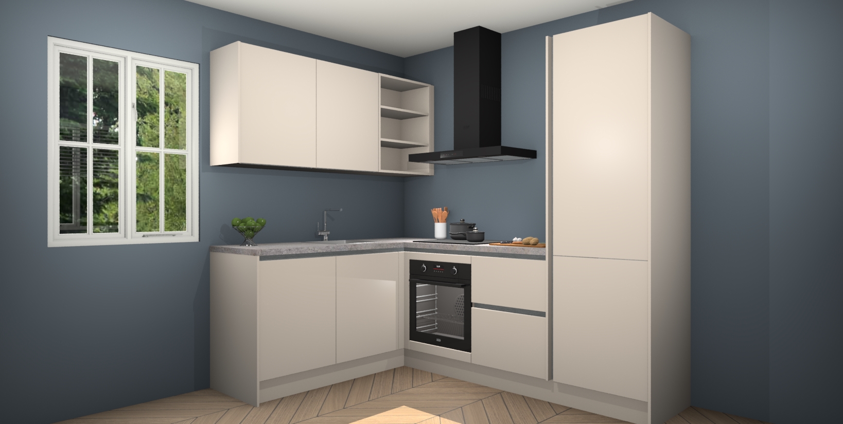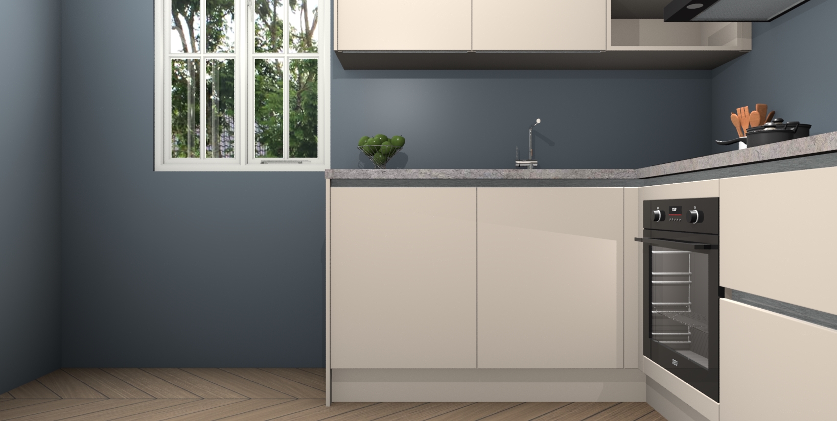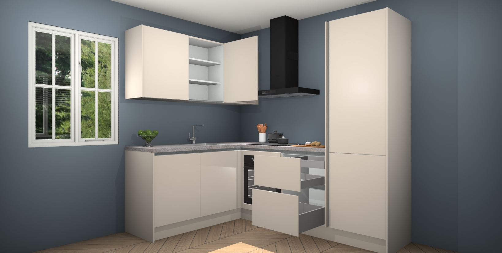 Maak kennis met de Kasjmier greeploze keuken Boekarest, een moderne hoekkeuken waar al uw vrienden en familie jaloers op zullen zijn! Het verbluffende mooie ontwerp past in elk interieur en is een ideale keuze voor wie op zoek is naar een klassieke, maar verfijnde look.