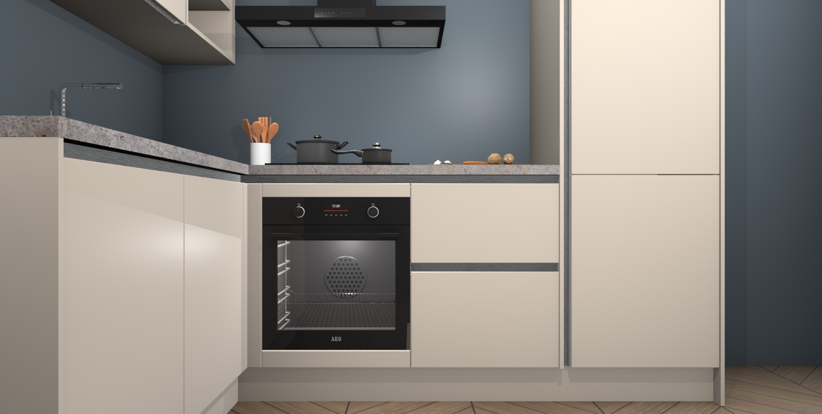 Inclusief plinten, stelpoten en werkblad