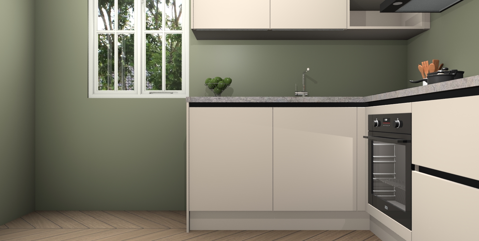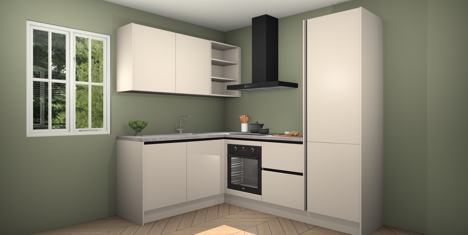 Maak kennis met de Kasjmier greeploze keuken Boekarest, een moderne hoekkeuken waar al uw vrienden en familie jaloers op zullen zijn! Het verbluffende mooie ontwerp past in elk interieur en is een ideale keuze voor wie op zoek is naar een klassieke, maar verfijnde look.