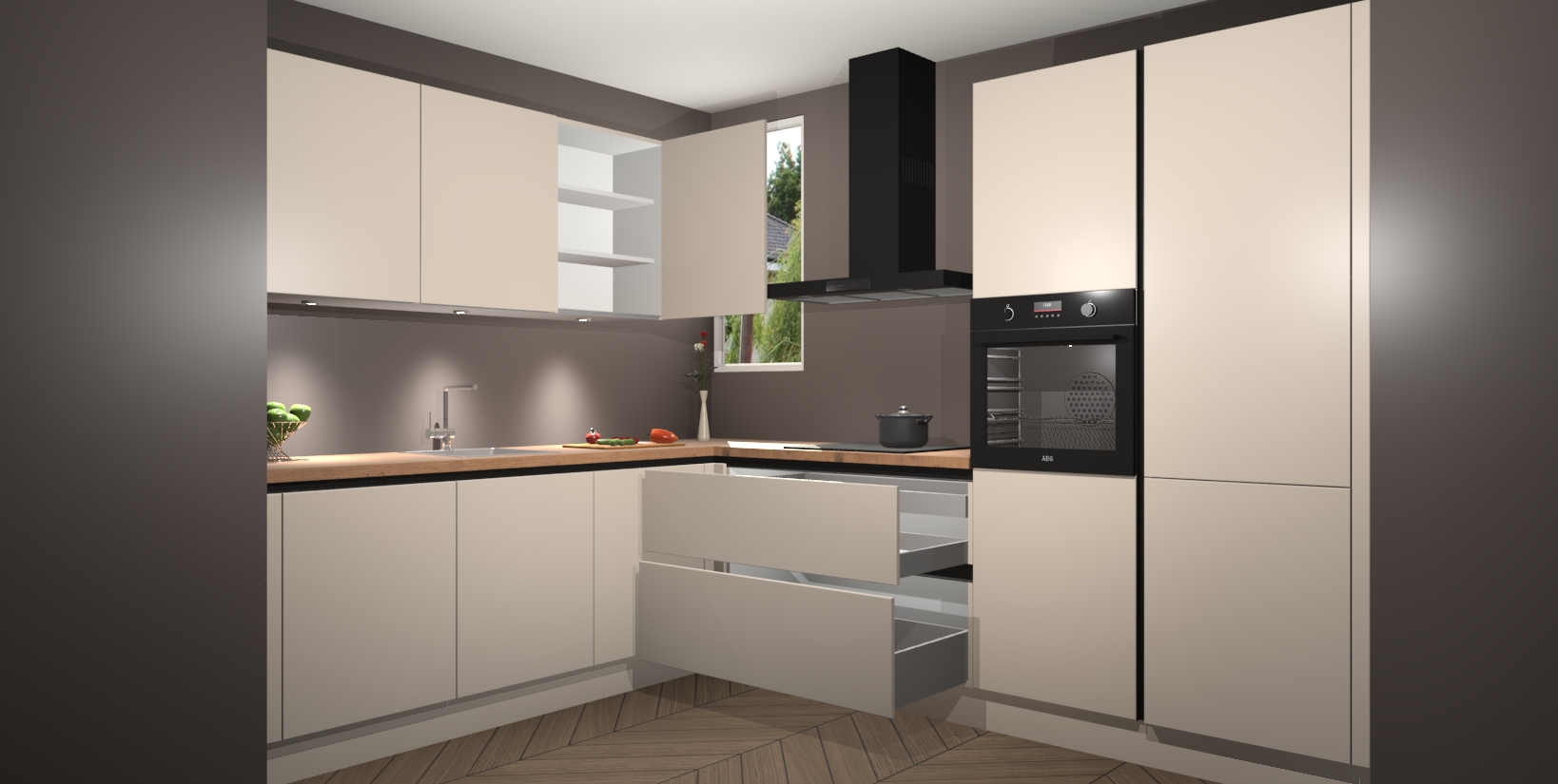 In deze box zijn alle kleuren verzameld van de deuren en werkbladen. Vraag de gratis kleurenbox aan en kijk thuis rustig verder!
