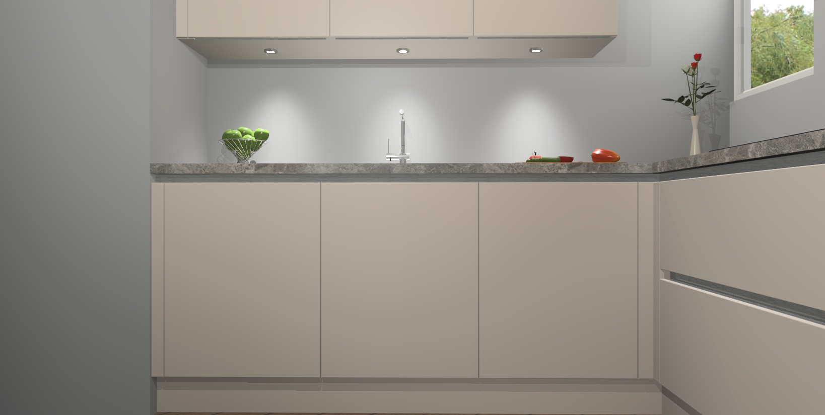 Maak u keuken elegant en verfijnd met de kasjmier greeploze keuken Buenos Aires! Dit prachtige stuk heeft warme kleuren voor een strak, modern gevoel dat u de adem zal benemen. De handgrepen heeft net als de binnenkant van de kasten dezelfde kasjmier afwerking, waardoor alles er nog beter uitziet.