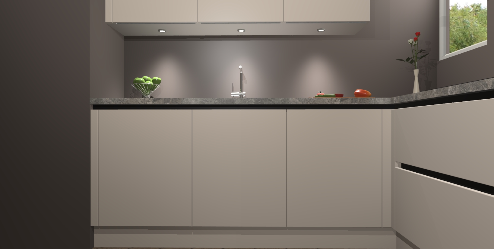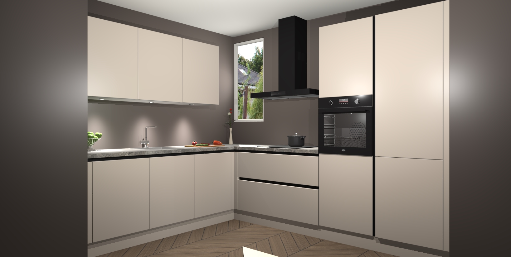 Maak u keuken elegant en verfijnd met de kasjmier greeploze keuken Buenos Aires! Dit prachtige stuk heeft warme kleuren voor een strak, modern gevoel dat u de adem zal benemen. De handgrepen heeft net als de binnenkant van de kasten dezelfde kasjmier afwerking, waardoor alles er nog beter uitziet.