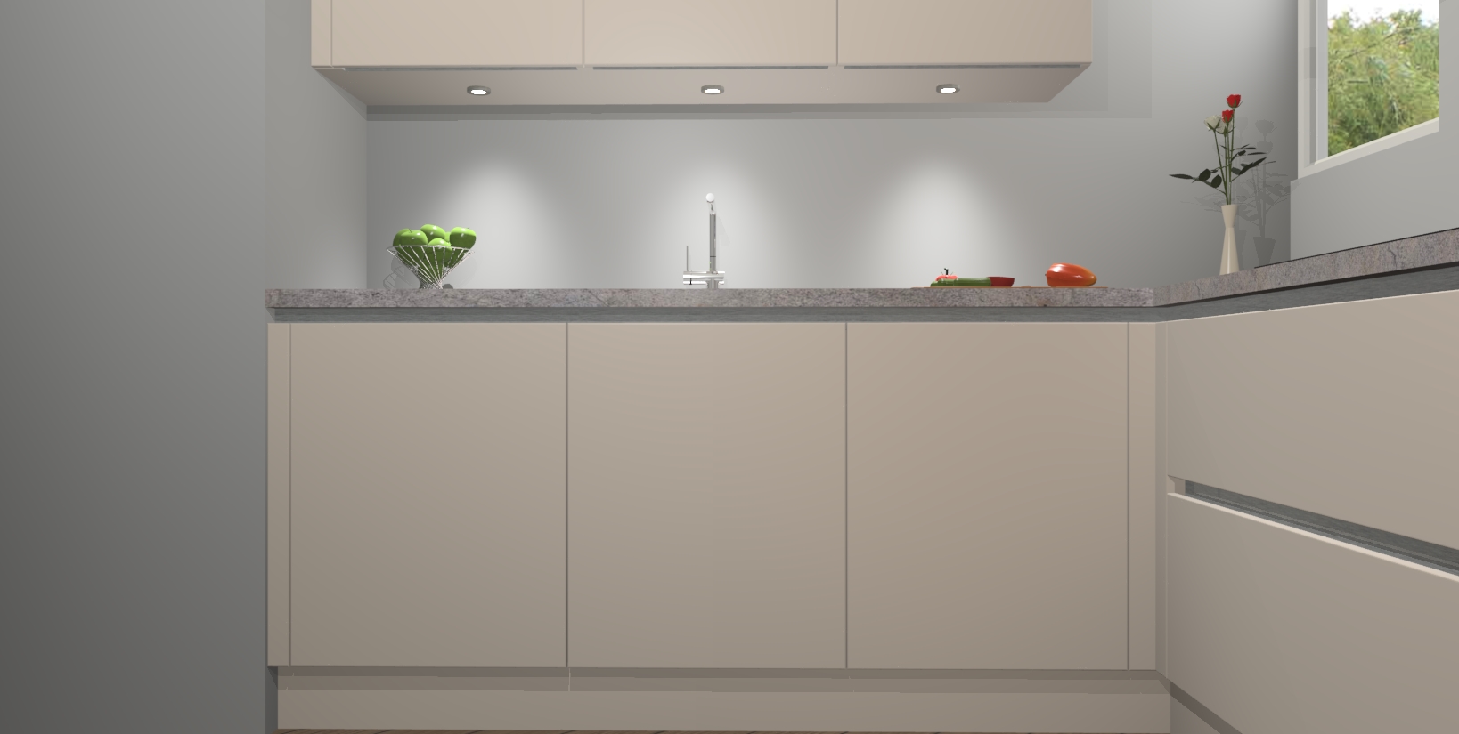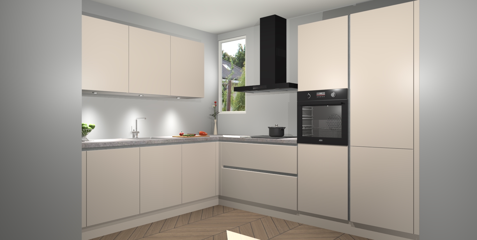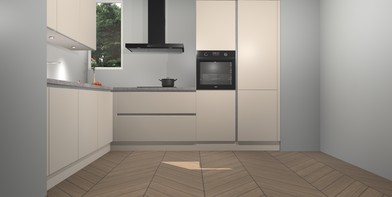 Maak u keuken elegant en verfijnd met de kasjmier greeploze keuken Buenos Aires! Dit prachtige stuk heeft warme kleuren voor een strak, modern gevoel dat u de adem zal benemen. De handgrepen heeft net als de binnenkant van de kasten dezelfde kasjmier afwerking, waardoor alles er nog beter uitziet.