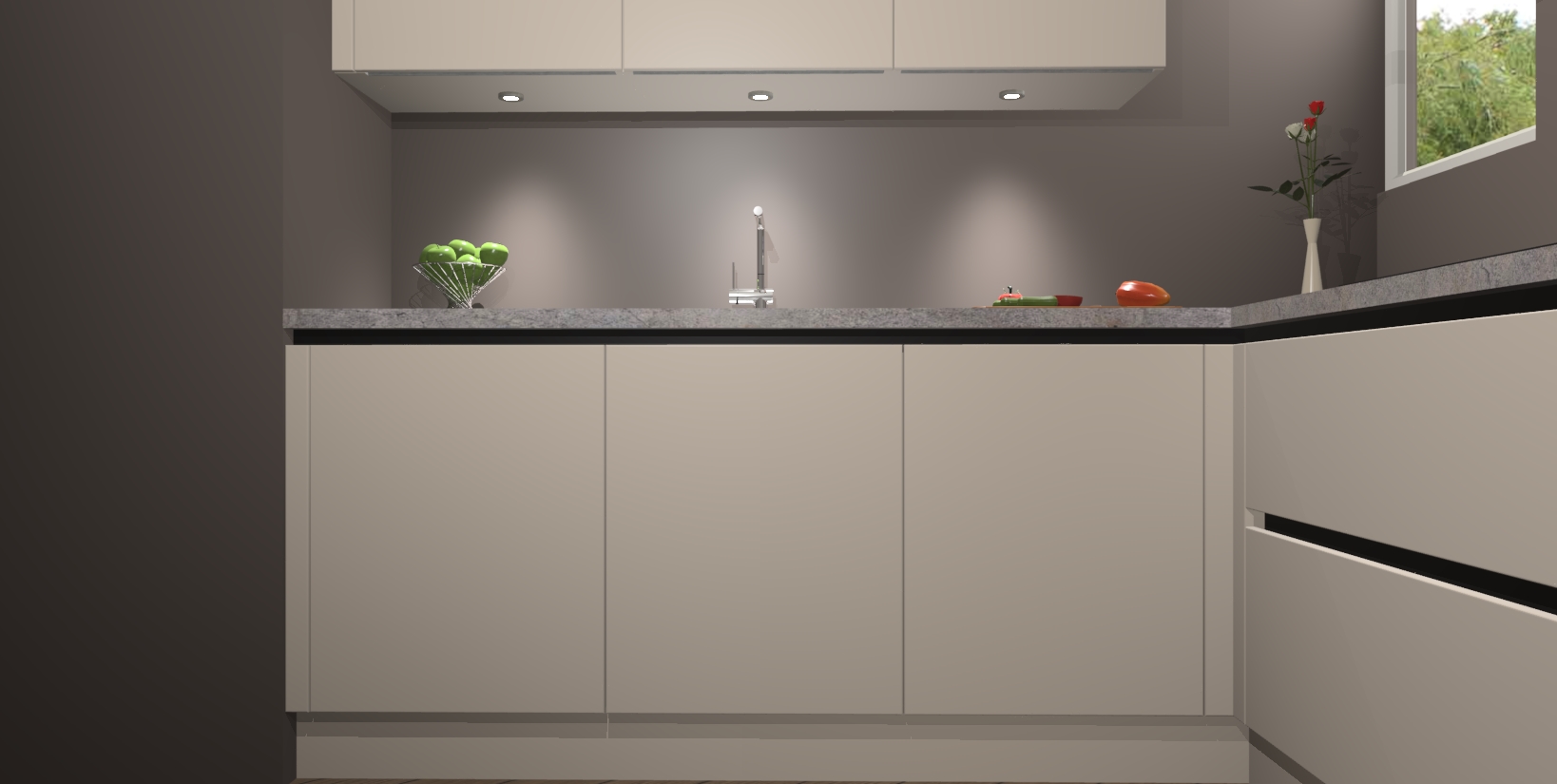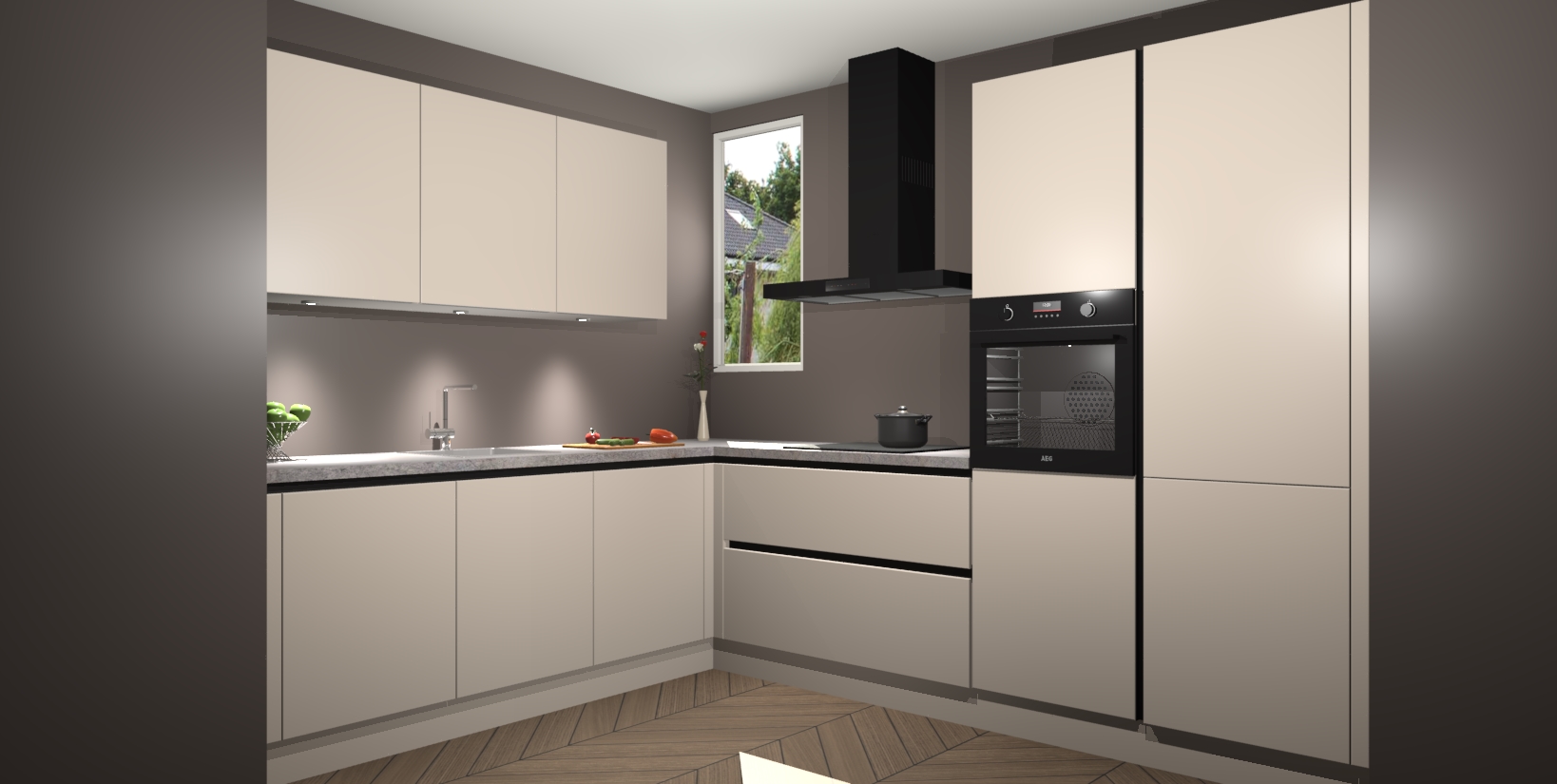 Maak u keuken elegant en verfijnd met de kasjmier greeploze keuken Buenos Aires! Dit prachtige stuk heeft warme kleuren voor een strak, modern gevoel dat u de adem zal benemen. De handgrepen heeft net als de binnenkant van de kasten dezelfde kasjmier afwerking, waardoor alles er nog beter uitziet.