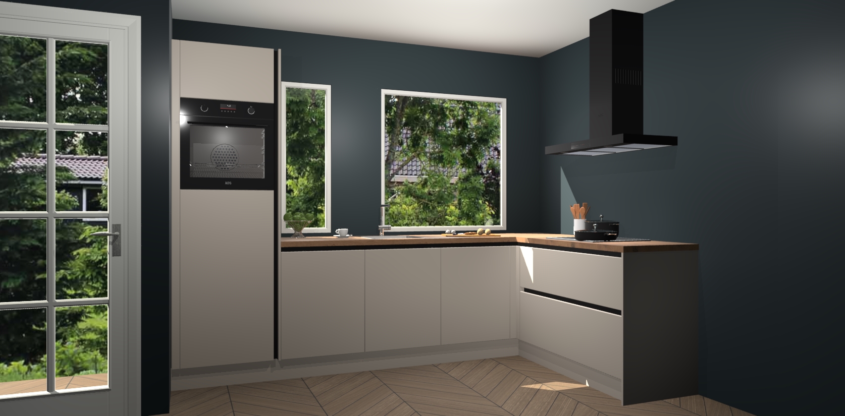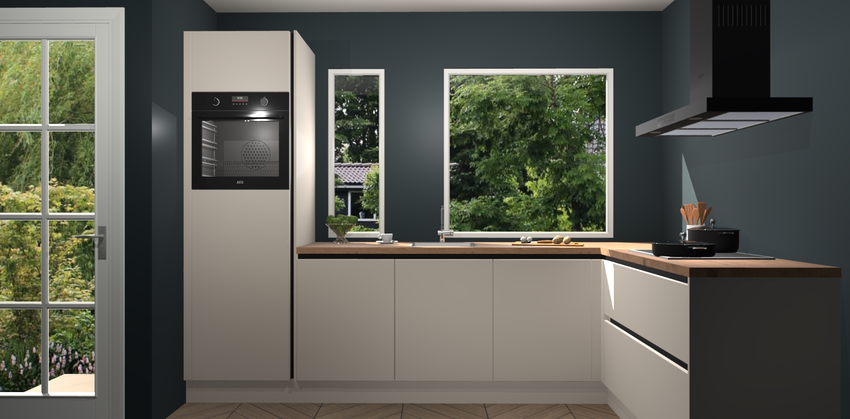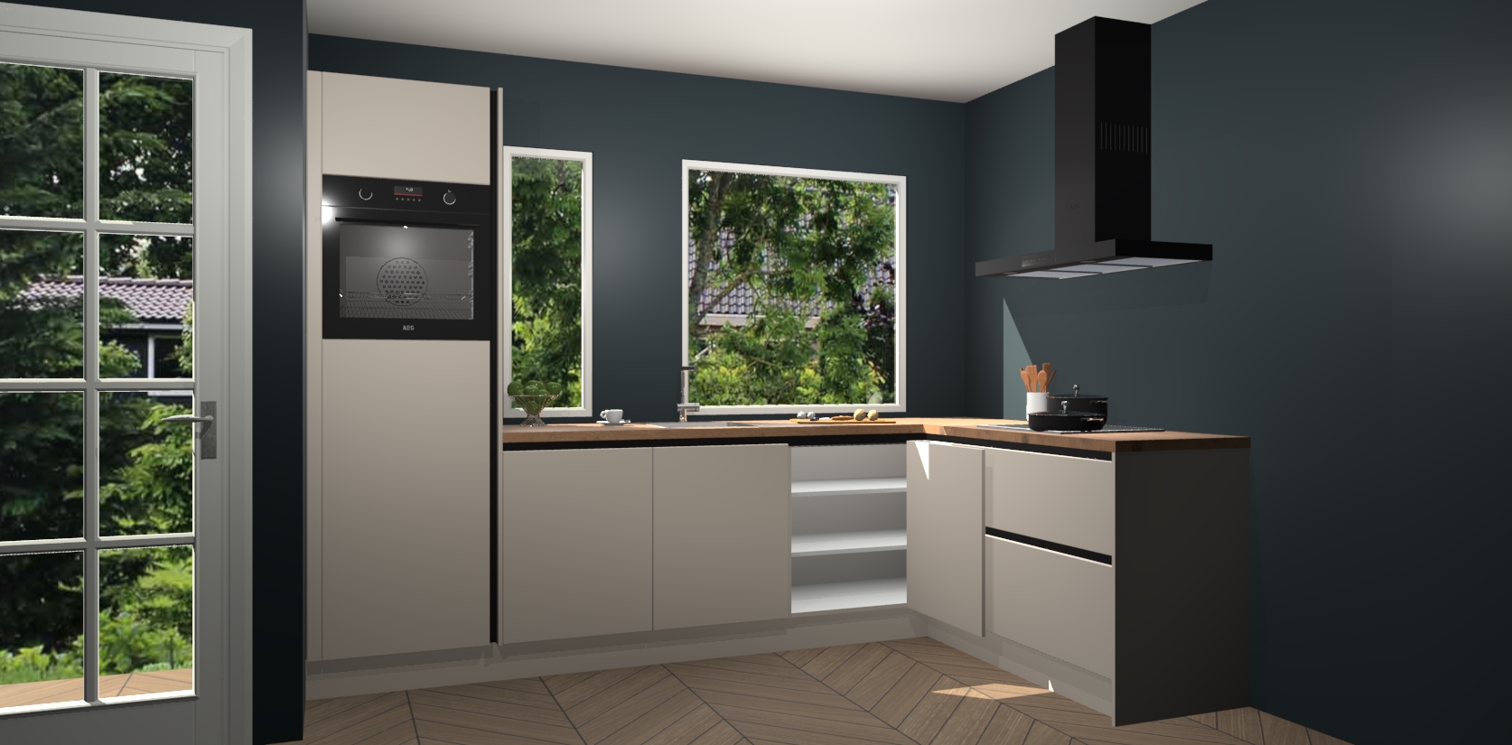 Deze complete keuken wordt geleverd met 5 inbouwapparaten: een oven, inductiekookplaat, afzuigkap, vaatwasser en koelkast. De toestellen kunnen na bestelling ook gemakkelijk worden opgewaardeerd naar AEG. Bovendien is elke deur in deze keuken voorzien van handige softclose technologie voor eenvoudig gebruik! Als een leuke toevoeging zit in deze keuken ook een carrousel, zo hoef je niet meer de hoek in duiken om iets te pakken.